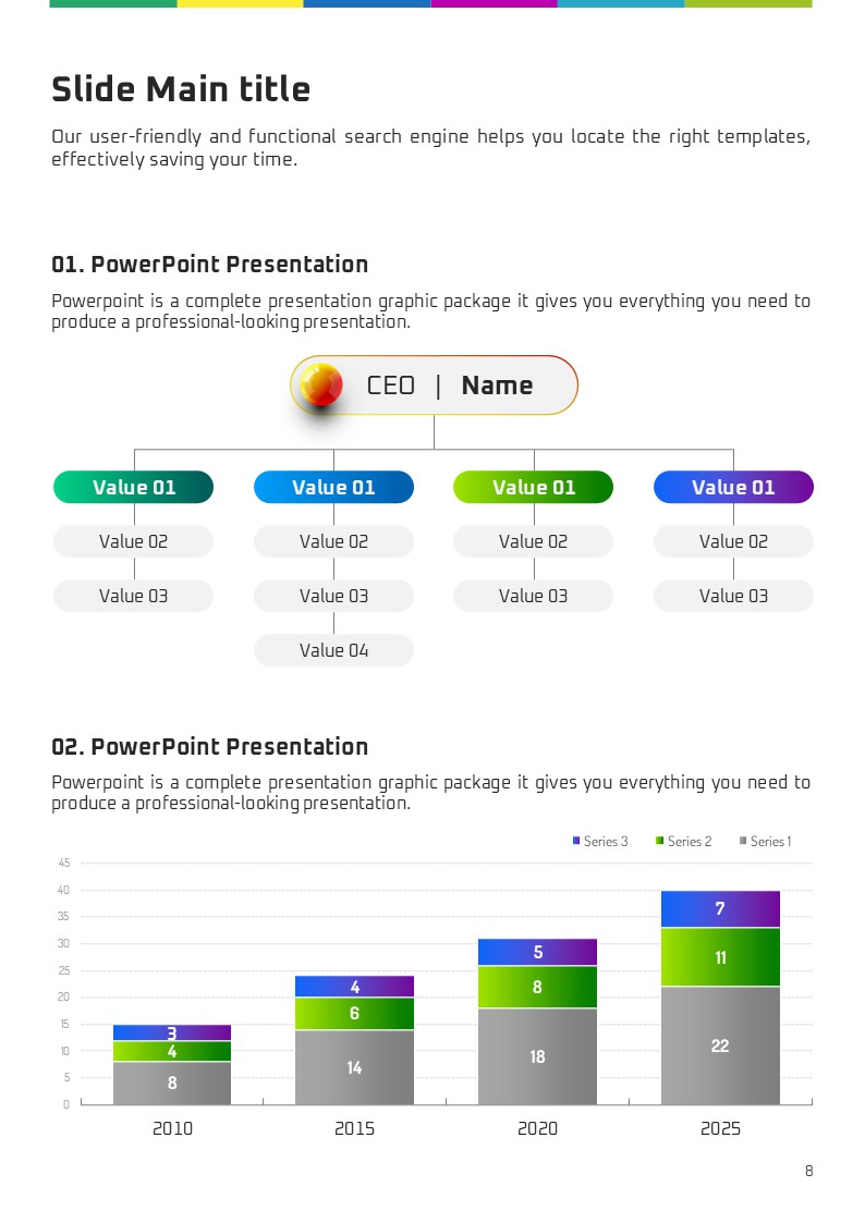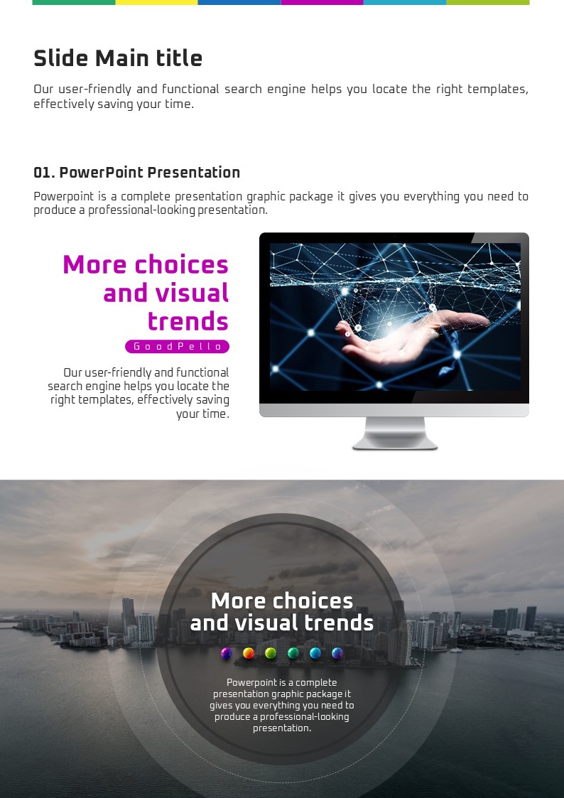이 인포그래픽 디자인 세로형 템플릿은 다양한 주제와 문서 유형을 위한 혁신적이고 세련된 구성으로 설계되었습니다. 시각적으로 매력적인 요소로 배열된 슬라이드는 보고서, 제안서, 교육 자료 등에서 효과적인 정보 전달을 가능하게 합니다. 기업 실무자와 스타트업 팀은 물론 크리에이티브 전문가들에게 특히 추천드립니다.