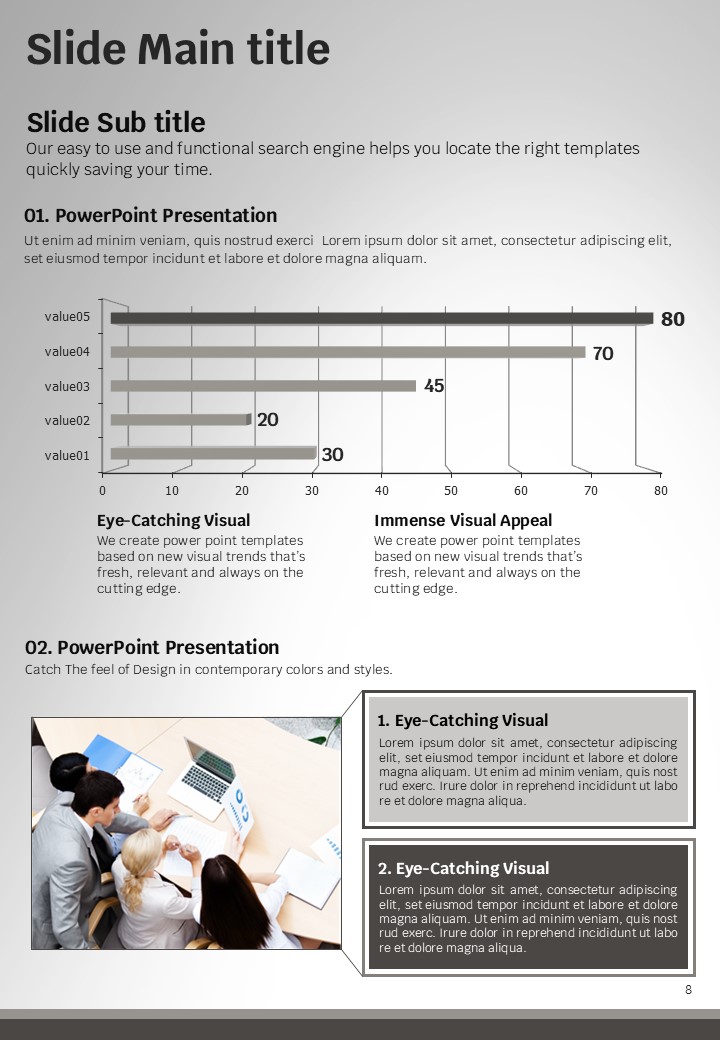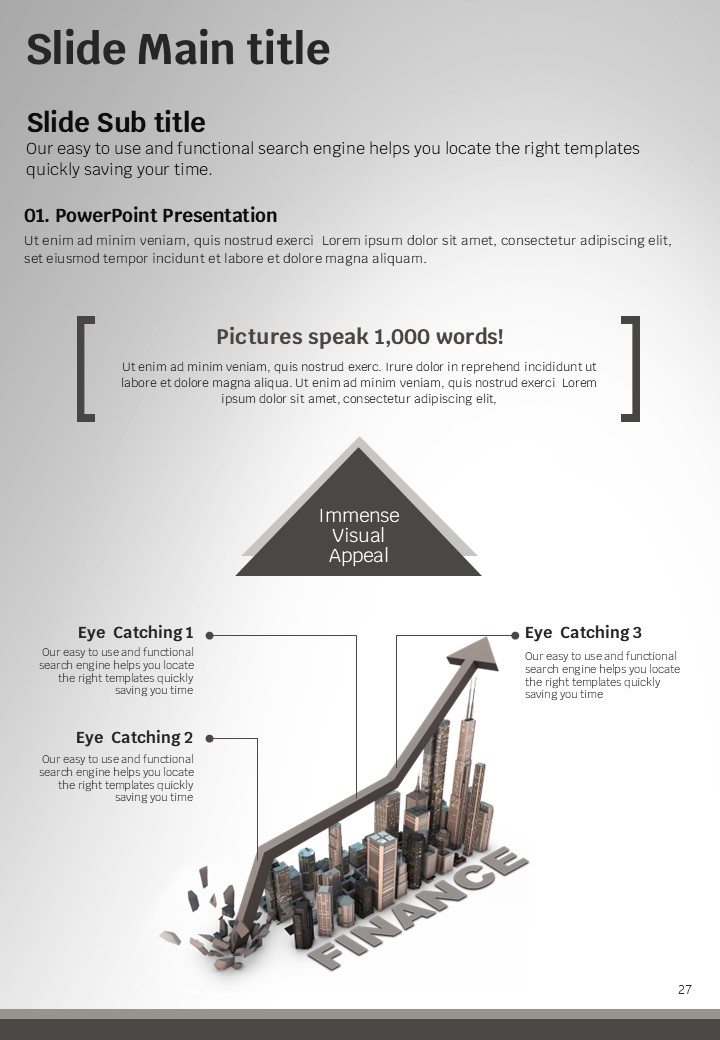 이 금융 프레젠테이션 템플릿은 세로형 구조로 설계되어 있어 비즈니스 관련 보고서, 투자 설명 및 금융 데이터를 시각적으로 효과적으로 전달하는 데 최적화되었습니다. 깔끔하고 현대적인 회색 톤을 사용하여 전문적인 이미지를 부각시켜 다양한 비즈니스 상황에 적합합니다. 특히 기업 실무자, 금융 전문가 및 스타트업 팀들에게 추천드립니다.