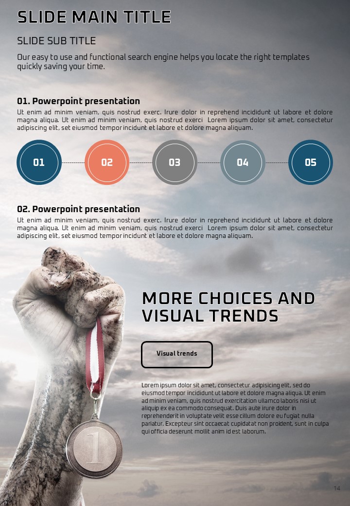 이 승리 세로형 템플릿은 성취감과 동기부여를 고취시키는 디자인으로, 보고서나 제안서 작성에 이상적입니다. 힘찬 느낌의 레이아웃과 강렬한 색상 조합이 돋보이며, 기업의 비전이나 목표를 효과적으로 전달할 수 있도록 구성되었습니다. 스타트업, 비즈니스 매니저, 교육자가 특히 유용하게 활용할 수 있습니다. 성과 기반의 프레젠테이션, 팀워크 발표, 그리고 창의적인 아이디어를 제시해야 하는 자리에서 빛날 수 있습니다.