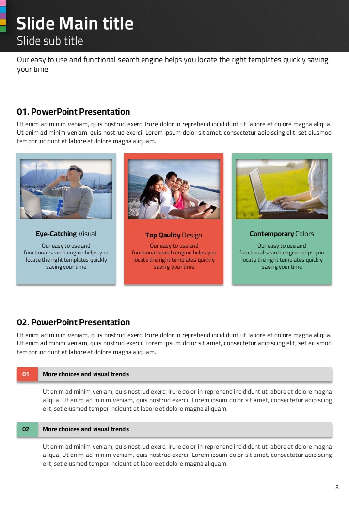 이 세로형 PPT 템플릿은 현대적이고 감각적인 디자인으로 커뮤니케이션 주제에 적합하게 구성되었습니다. 다양한 색상(초록, 빨강, 노랑)이 조화를 이루며 시각적으로 매력적인 요소를 제공합니다. 비즈니스 제안서, Team 회의 발표 자료, IT 관련 보고서 등에서 활용하기 매우 적합합니다. 기업의 실무자, 스타트업 팀, 교육 및 연구자에게 특히 유용합니다.
