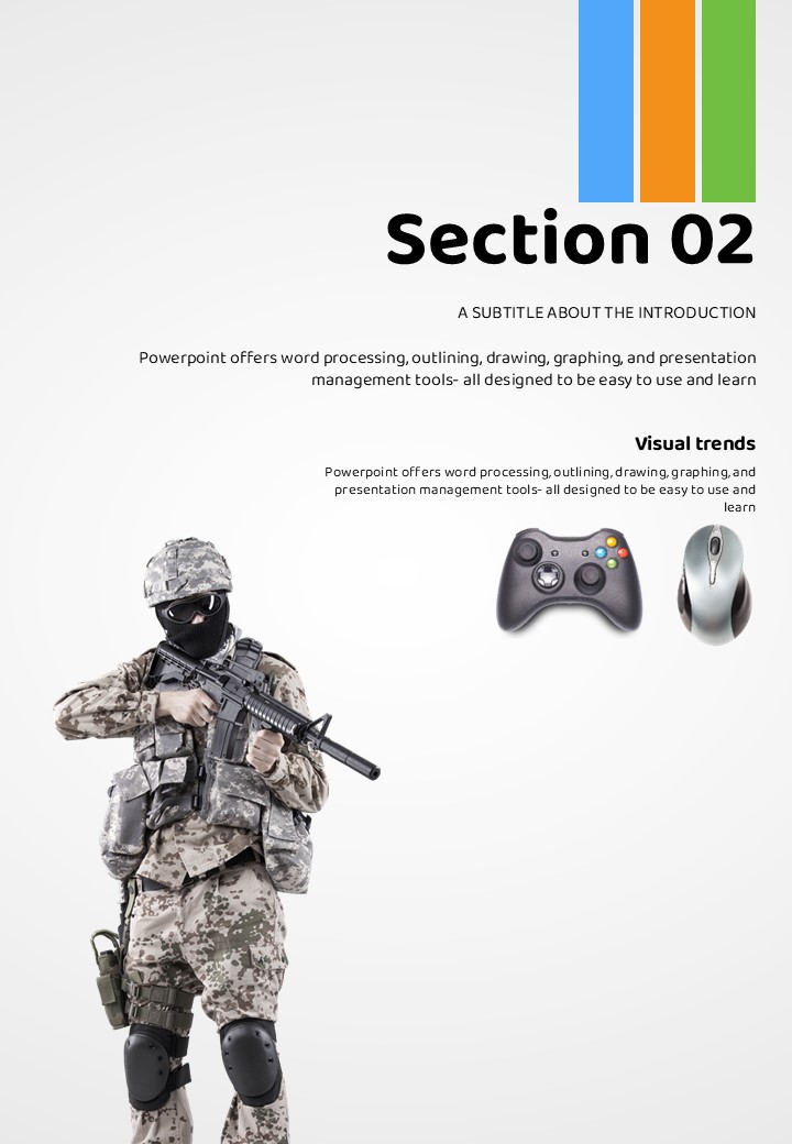 이 세로형 PPT 템플릿은 게임 산업에 특화된 신선하고 다채로운 디자인을 제공합니다. 화려한 색상과 뛰어난 레이아웃을 기반으로, 게임 관련 자료나 발표를 효과적으로 구성할 수 있습니다. 게임 개발자, 마케팅 전문가, 발표자료를 준비하는 팀에게 최적화된 이 템플릿은 창의력을 발휘하고 청중의 관심을 끌기에 적합합니다. 다양한 디자인 요소가 어우러져 실제 게임의 매력을 더욱 돋보이게 해 줄 것입니다.
