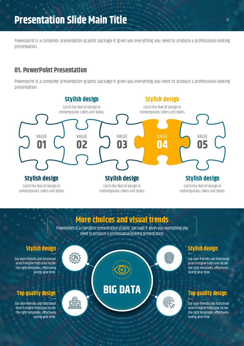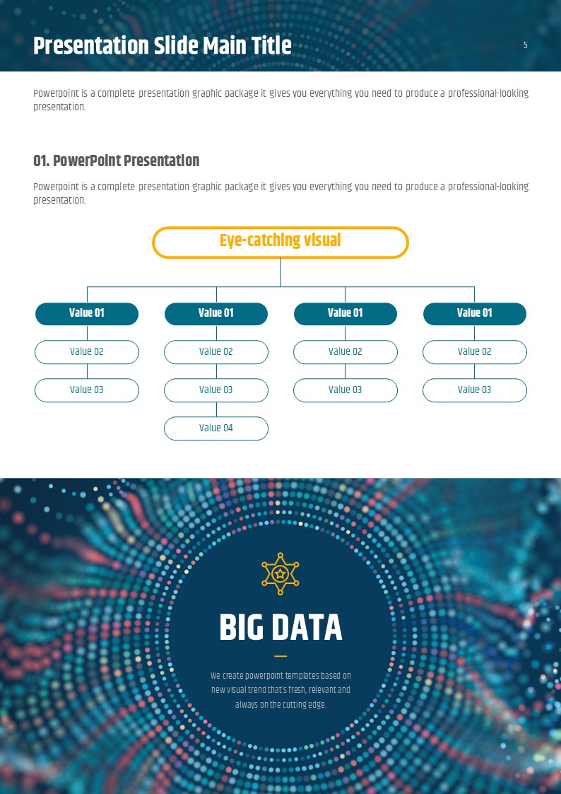 이 빅데이터 세로형 PPT 템플릿은 IT 및 컴퓨터 분야의 정보를 효과적으로 전달하는 데 초점을 맞춘 디자인입니다. 세련되고 현대적인 구성은 데이터 분석 보고서, 연구 자료, 기업 발표에 적합합니다. 기업 실무자, 데이터 분석가, IT 전문가 및 스타트업 팀에게 특히 추천하며, 효과적인 시각적 표현으로 청중의 관심을 끌 수 있습니다.