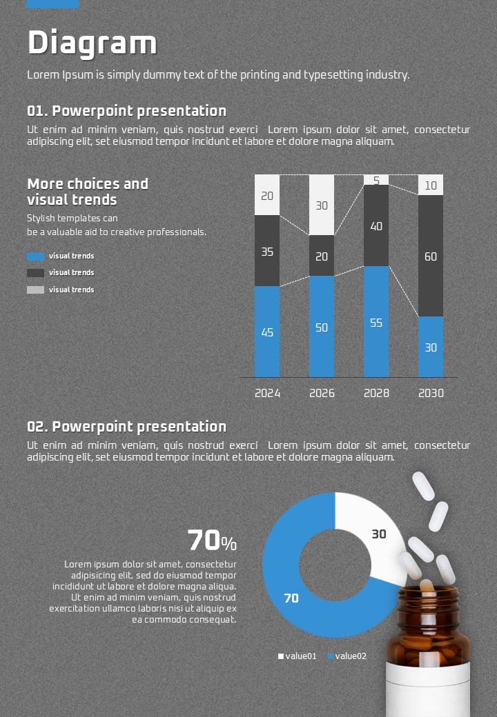 이 세로형 템플릿은 의료 분야의 전문성을 담아 다양한 치료 및 건강 관련 주제를 효과적으로 제시할 수 있도록 설계되었습니다. 직관적인 아이콘과 데이터 시각화를 통해 복잡한 정보를 간편하게 전달하며, 표준화된 디자인이 강력한 신뢰성을 바탕으로 모든 의료 발표에 적합합니다. 병원, 연구소, 제약산업 종사자에게 추천합니다.