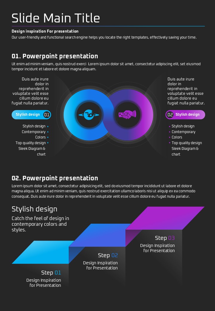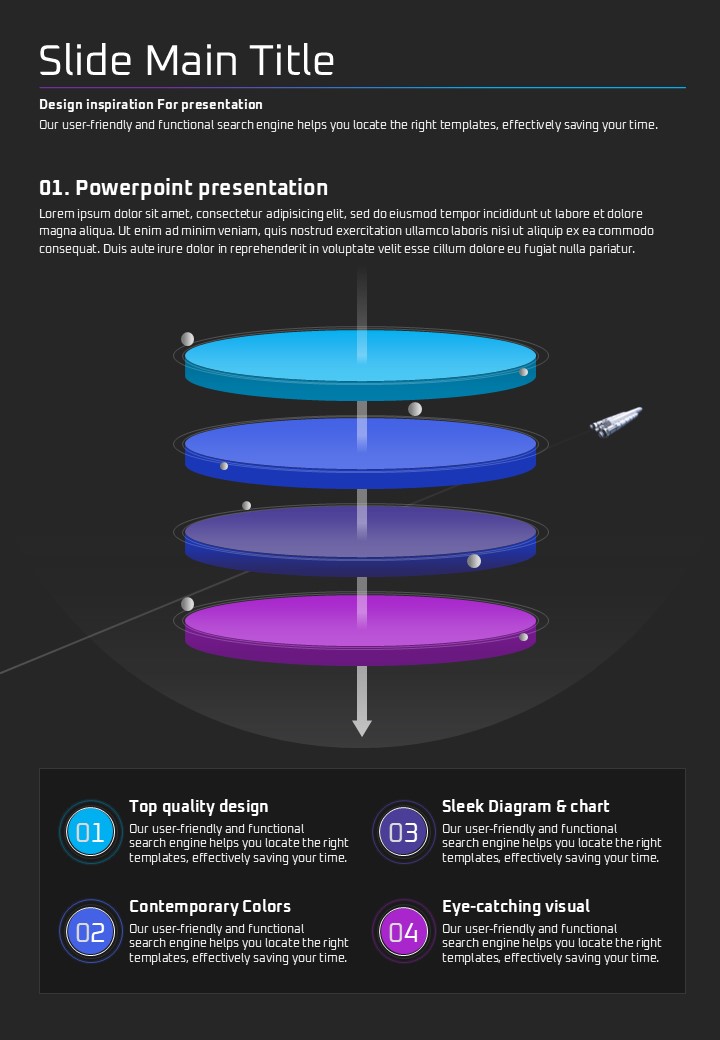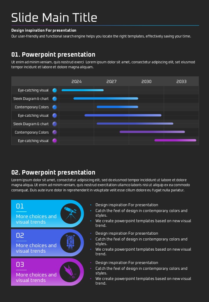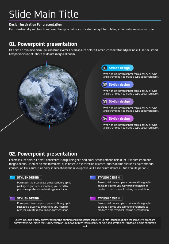 이 템플릿은 우주 여행을 테마로 하여 세로형 구조로 디자인되어 있어, 제안서, 연구 발표, 과학적 자료 전달에 최적화되어 있습니다. 보라색과 파란색을 주요 색상으로 사용하여 신비로운 우주의 이미지를 전달하며, 시각적인 요소가 가득한 구성은 내용의 이해를 돕고 관심을 끌어 올립니다. 공간탐사 관련 기업, 과학 연구자, 교육자에게 특히 유용합니다.
