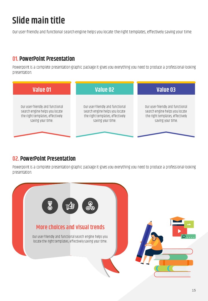 이 템플릿은 온라인 교육과 관련된 수업 자료, 강의안, 웹 세미나 등을 제작하는 데 적합한 세로형 프레젠테이션 템플릿입니다. 선명하고 현대적인 디자인으로, 다양한 색상 조합이 학생들의 시선을 사로잡고, 정보를 효과적으로 전달할 수 있도록 도와줍니다. 교사, 강사, 교육 관련 스타트업 팀에게 추천드립니다.