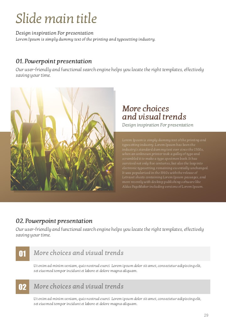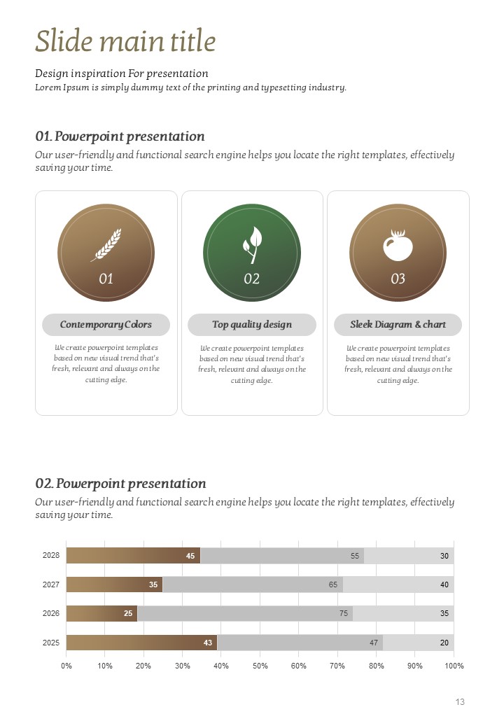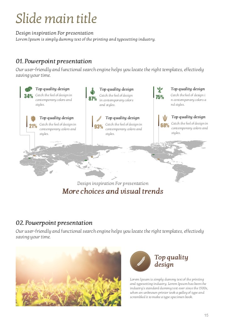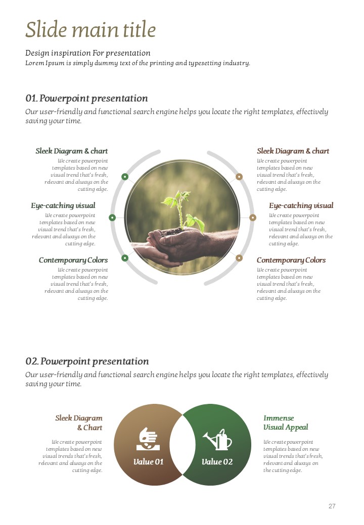 이 템플릿은 유기농 및 자연 중심의 콘텐츠를 효과적으로 표현할 수 있도록 디자인되었습니다. 자연의 요소를 중시하는 이 템플릿은 농업, 환경, 여행 및 건강 관련 발표에 적합합니다. 세로형 구조로 제작되어 제안서, 보고서 및 인쇄물에 활용하기 좋습니다. 생태계를 지키고 싶은 모든 분야의 실무자에게 추천드립니다.