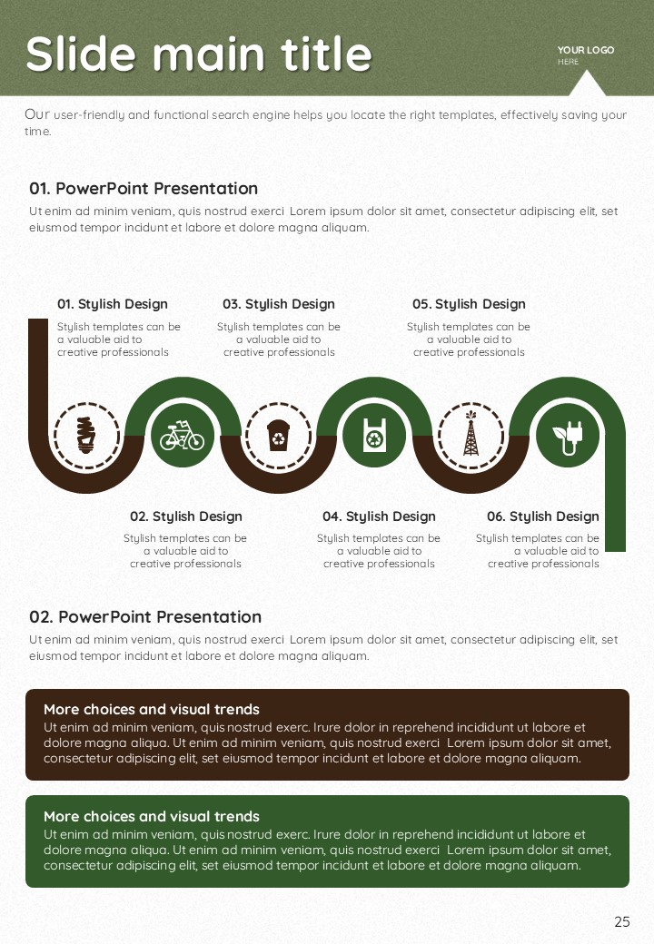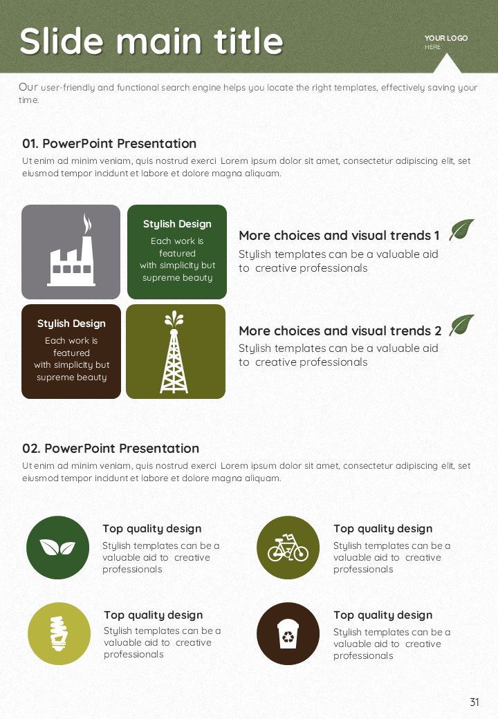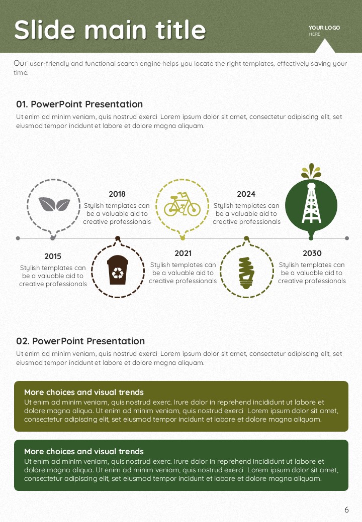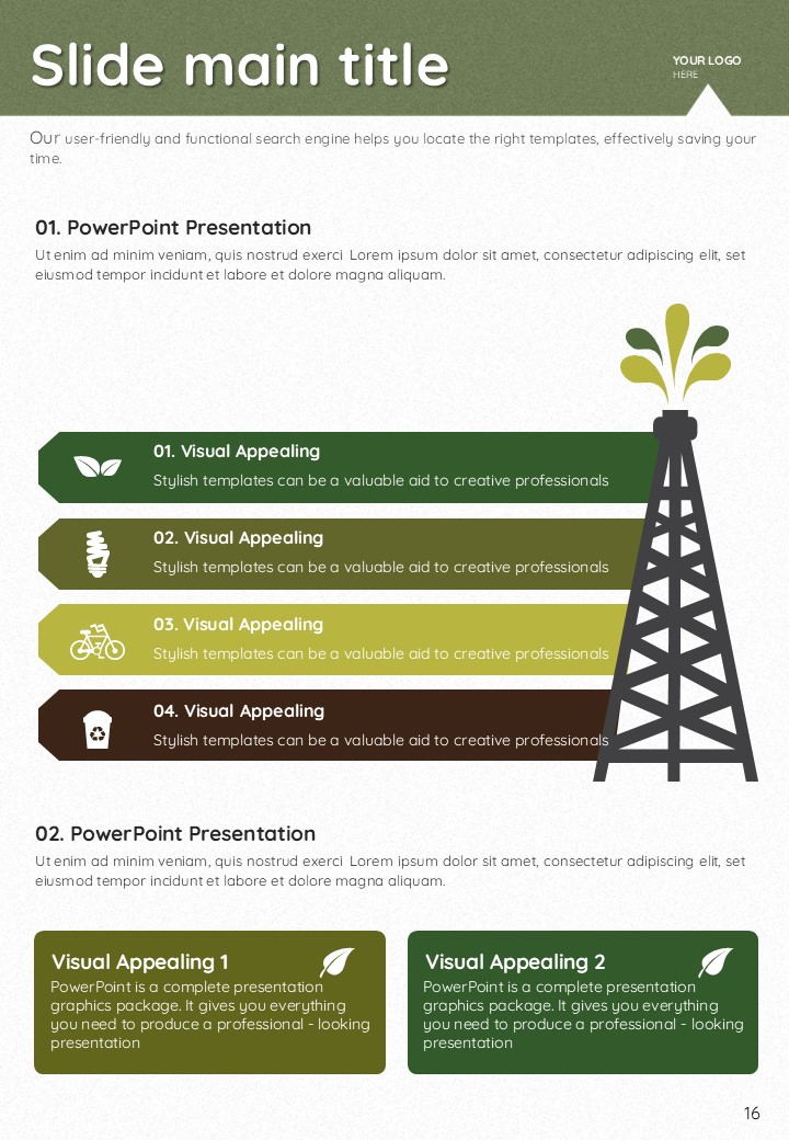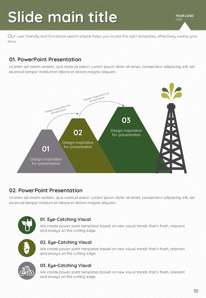 이 템플릿은 재생 가능 에너지 프로젝트, 환경 관련 보고서, 지속 가능한 발전 전략 등을 효과적으로 전달할 수 있는 구성입니다. 세련된 시각적 요소와 깔끔한 레이아웃이 특징으로, 에너지 관련 데이터 및 통계를 명확하게 전달할 수 있도록 설계되었습니다. 기업 실무자, 환경 단체, 교육 및 연구 분야 종사자에게 특히 추천드립니다.