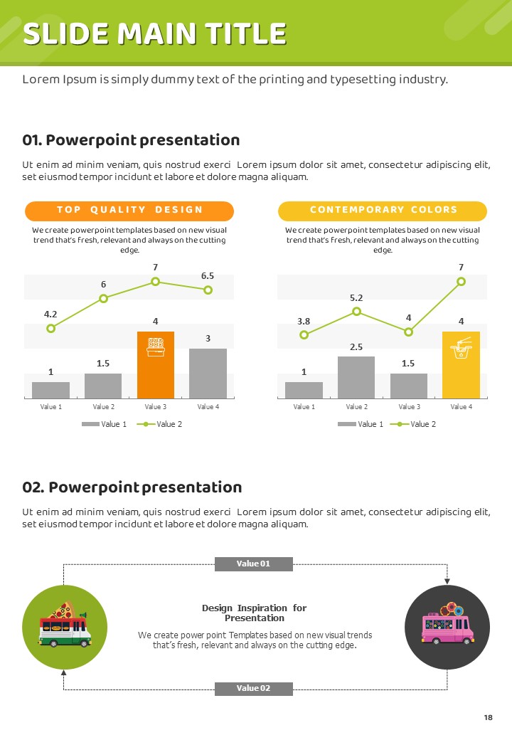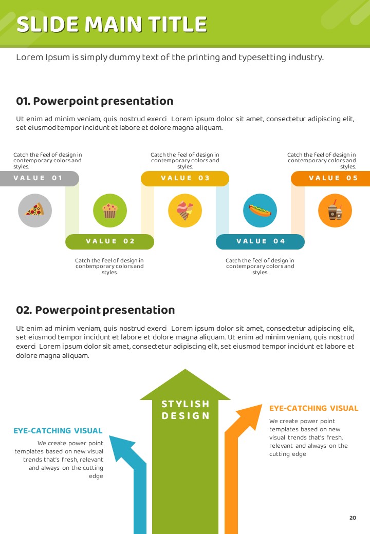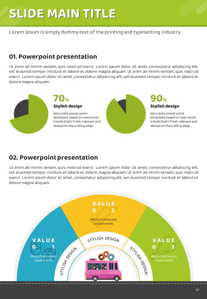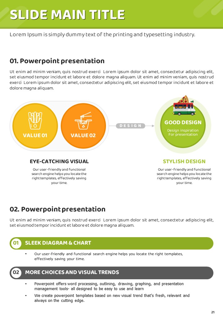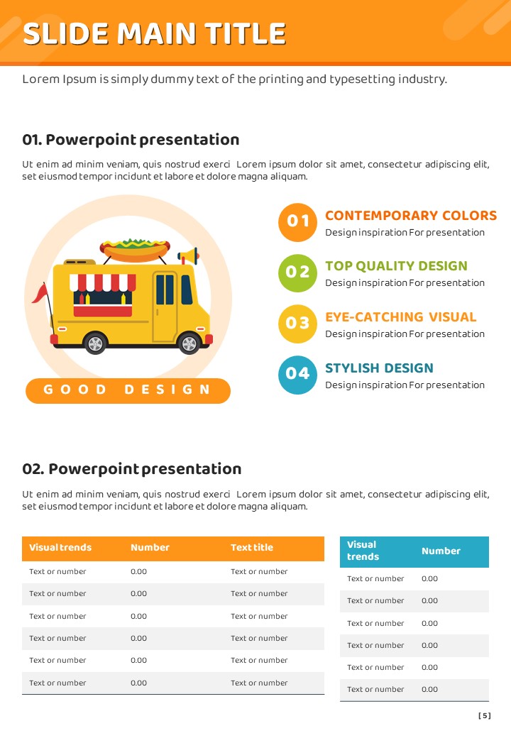 이 템플릿은 푸드트럭을 주제로 한 발표 자료 제작에 최적화된 세로형 PPT입니다. 주황색과 초록색의 조화로운 색상 배합이 돋보이며, 화려한 이미지와 직관적인 레이아웃이 특징입니다. 행사, 이벤트, 마케팅 제안서 등 다양한 상황에서 활용할 수 있으며, 특히 식음료 및 창업 관련 분야에서 큰 도움이 될 것입니다. 설계자, 음식 관련 스타트업, 마케팅 전문가에게 추천드립니다.