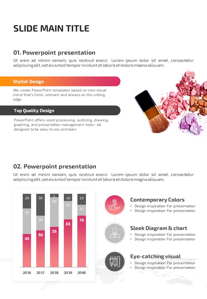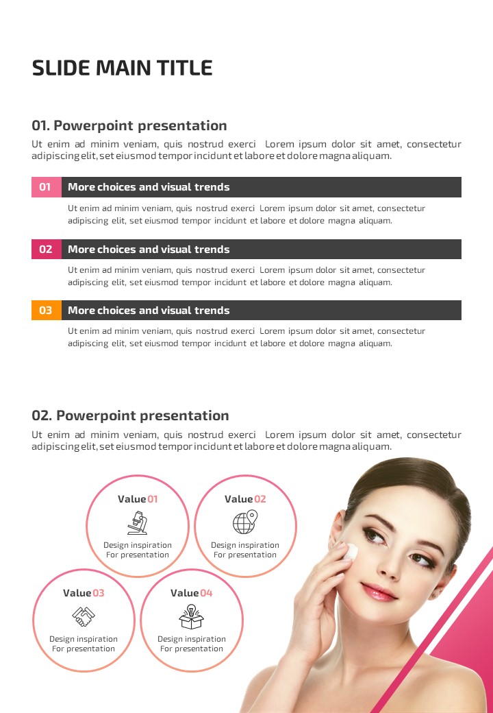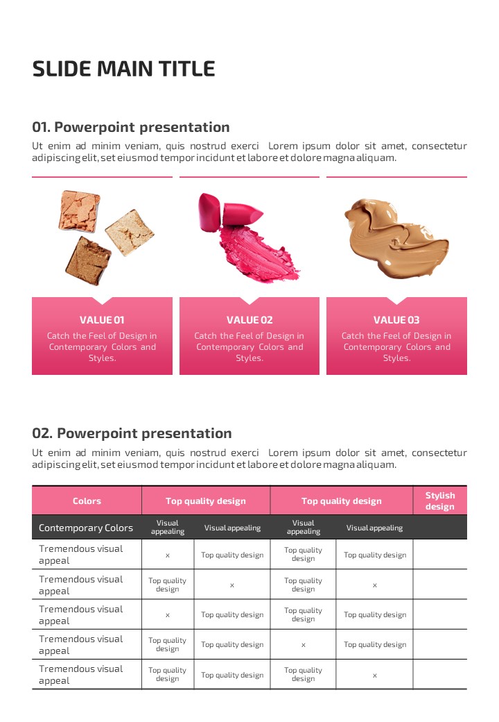 이 프레젠테이션 템플릿은 화장품 분야에 적합한 아름다운 디자인으로 구성되어 있습니다. 세련된 색채와 감각적인 레이아웃이 어우러져, 화장품 제품이나 뷰티 관련 제안서에 적합합니다. 다양한 비즈니스 환경에서 활용할 수 있으며, 대중에게 브랜드의 매력을 효과적으로 전달할 수 있도록 설계되었습니다. 뷰티 전문가, 마케팅 담당자, 제품 디자이너 등에 특히 추천드립니다.