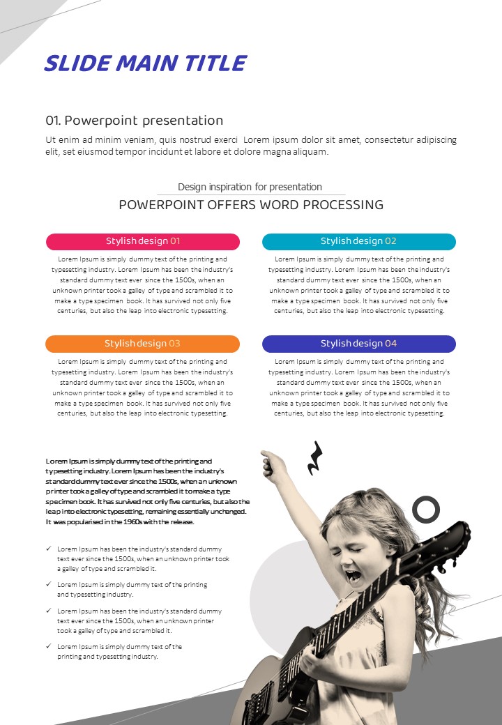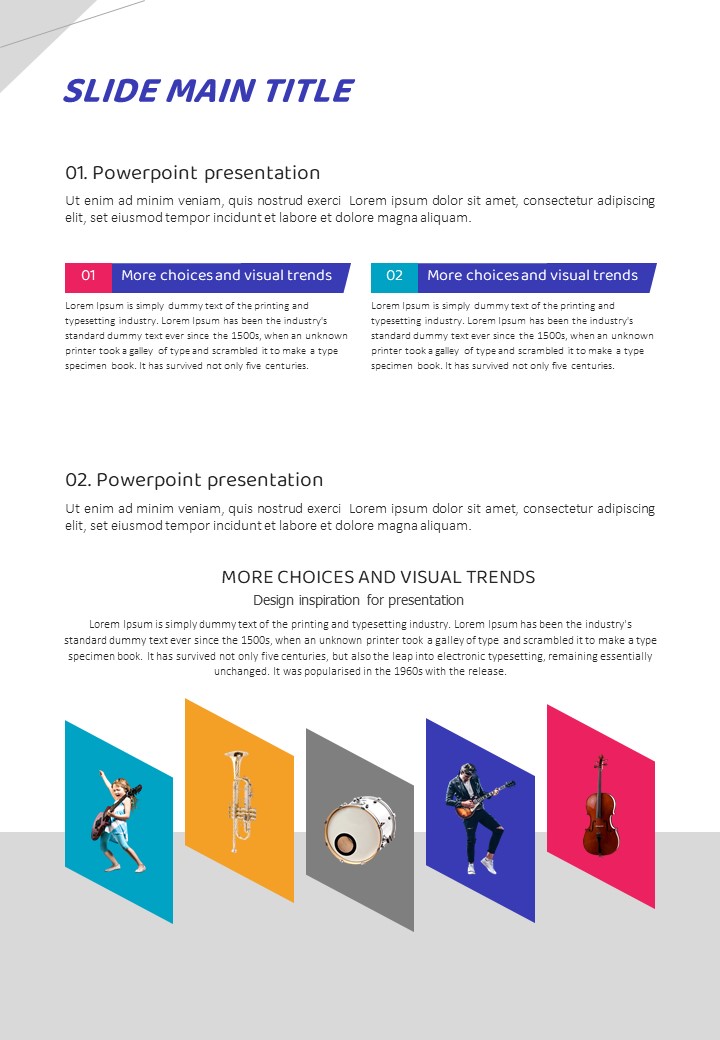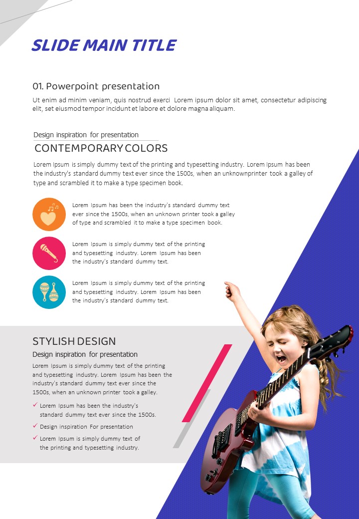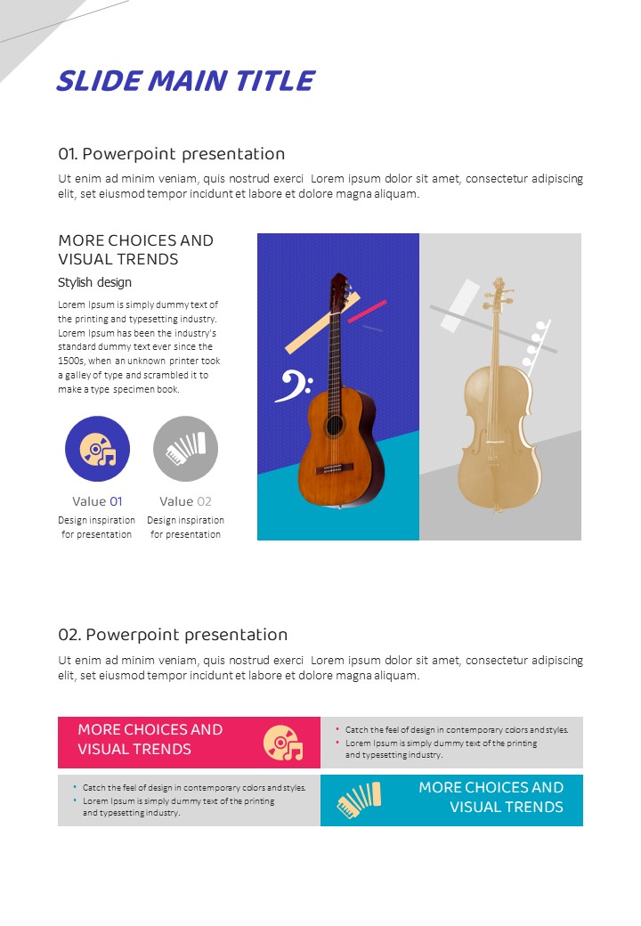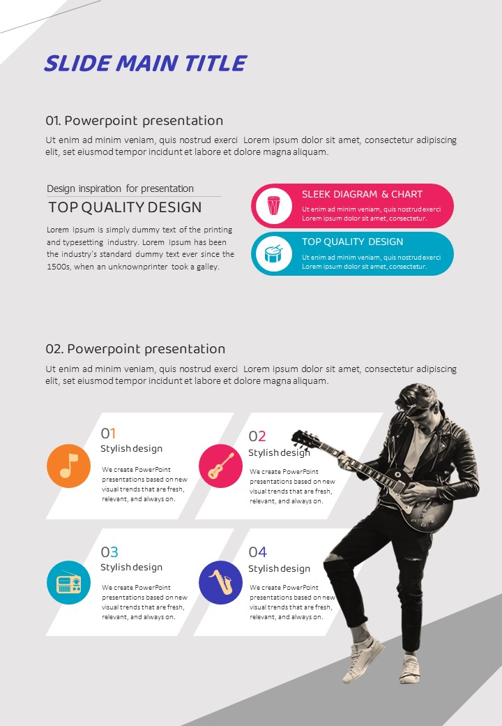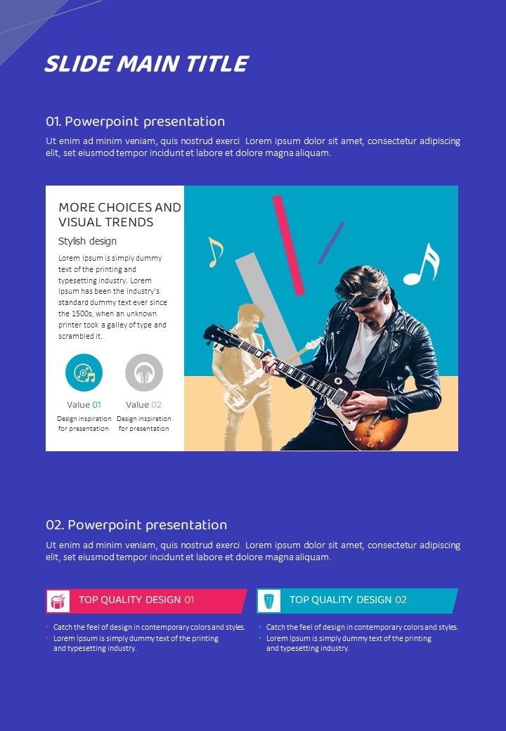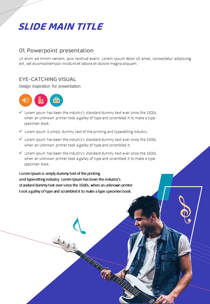 이 세로형 템플릿은 뮤직 페스티벌 관련 자료를 시각적으로 매력 있게 표현하기 위해 설계되었습니다. 보라색과 빨간색을 조화롭게 사용하여 시선을 사로잡으며, 다양한 음악 관련 요소를 강조하여 템플릿의 활용 가치를 높입니다. 이벤트 기획자 및 음악 관련 분야 종사자에게 최적화된 구성으로, 발표자료, 홍보물, 소셜 미디어 게시물 등 다양한 용도로 활용할 수 있습니다.