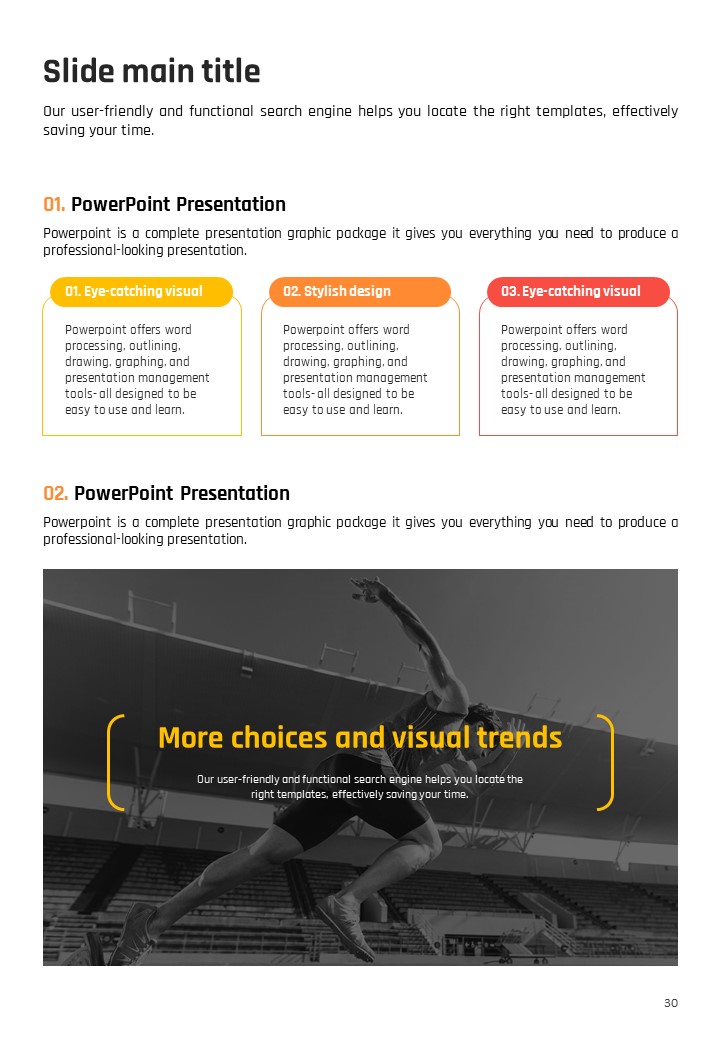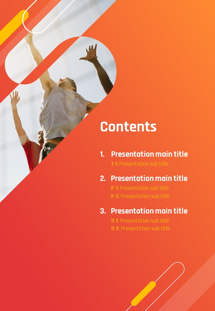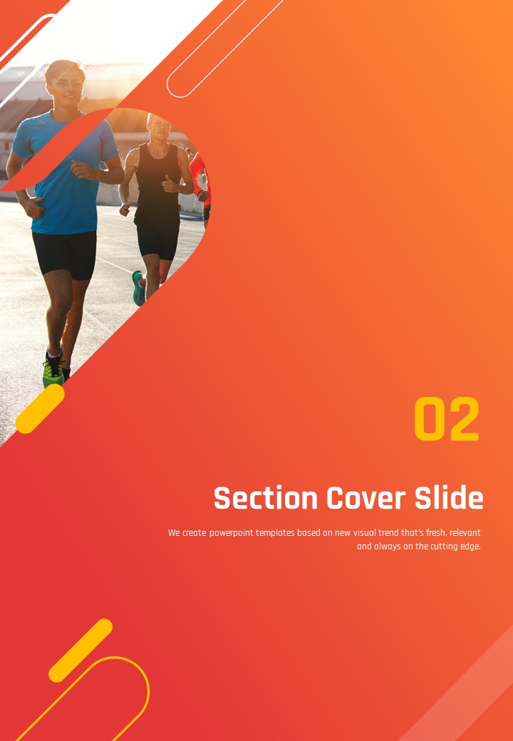 이 세로형 PPT 템플릿은 경주, 마라톤, 스포츠 관련 프레젠테이션에 적합한 역동적이고 현대적인 디자인으로 구성되어 있습니다. 주황과 노랑을 기본 색상으로 사용하여, 청중의 시선을 사로잡고 정보를 효과적으로 전달할 수 있도록 설계되었습니다. 스타트업, 운동팀 또는 교육기관에서의 보고서 및 제안서 작성에 적합합니다. 스포츠 관련 자료나 이벤트를 홍보하는 데 최적화된 템플릿입니다.