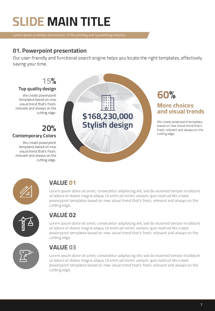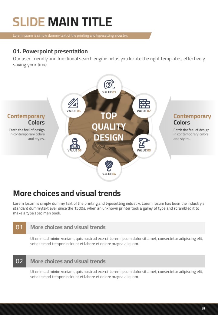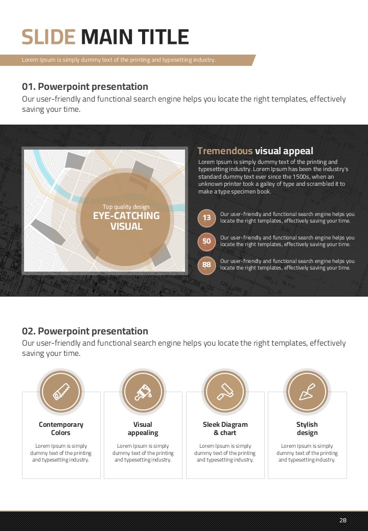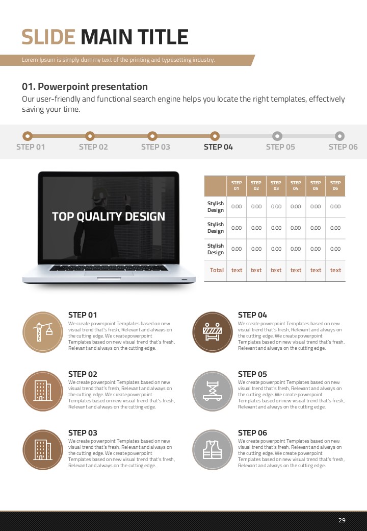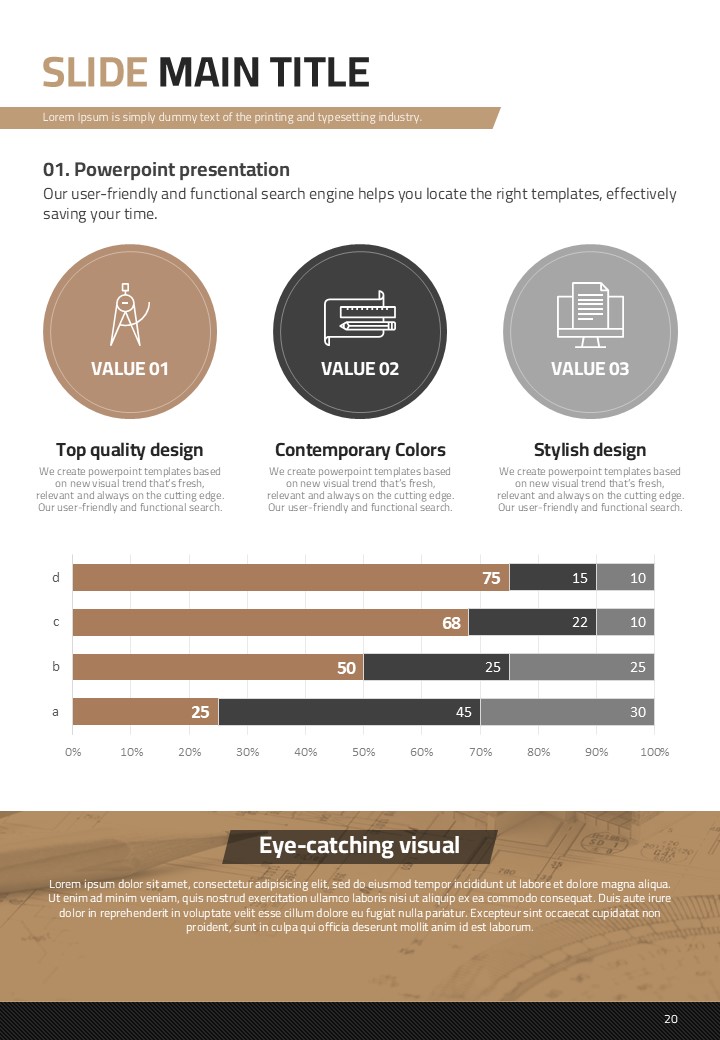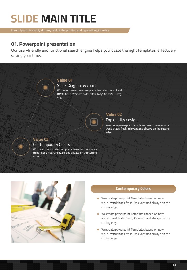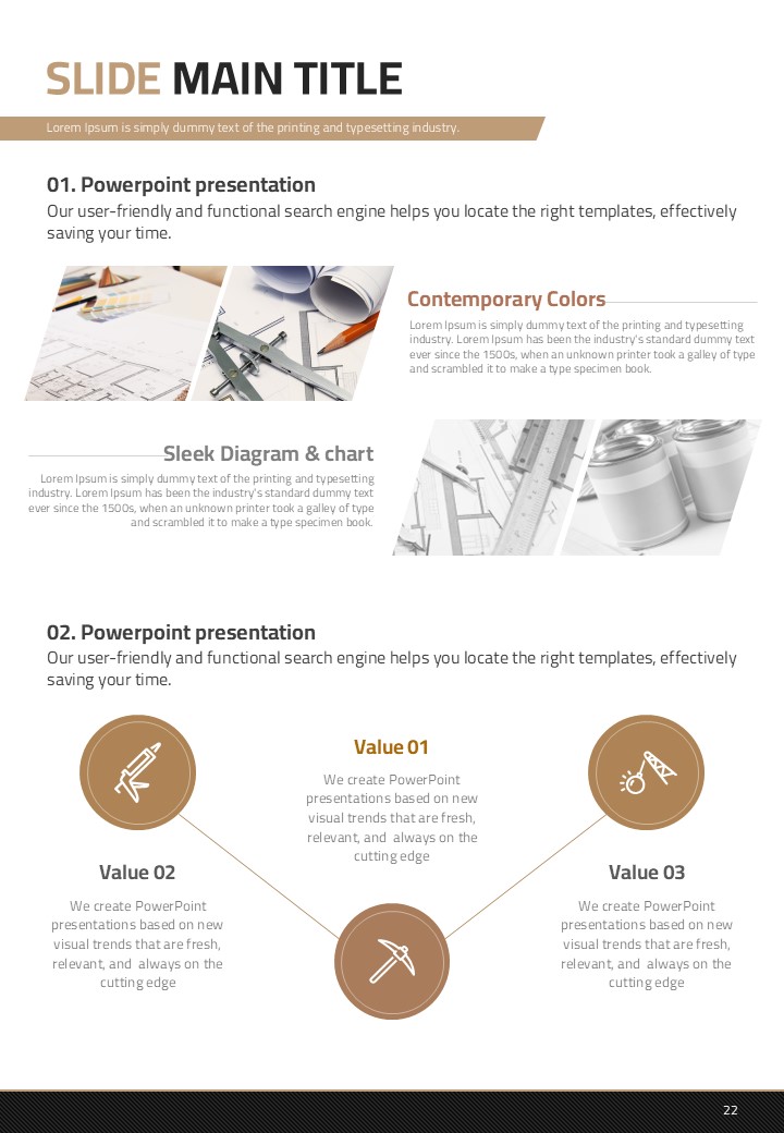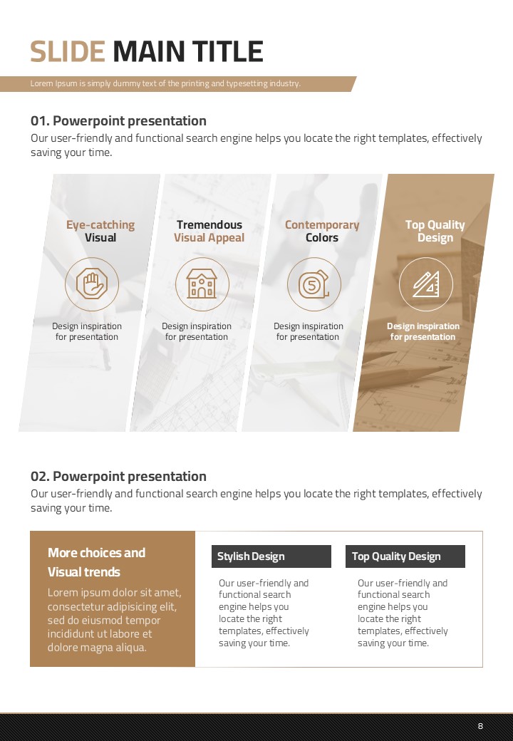 이 템플릿은 건축 설계 및 건설 산업에서의 발표에 최적화된 세로형 디자인으로 구성되어 있습니다. 갈색 톤을 바탕으로 설계된 이 PPT는 고급스러움을 제공하며 복잡한 정보를 효과적으로 전달할 수 있는 레이아웃을 갖추고 있습니다. 주로 건축가, 엔지니어 및 프로젝트 관리 전문가들에게 추천되며, 설계 도면, 프로젝트 진척 보고서 등 다양한 문서 유형에서 활용할 수 있습니다. 세로형 구조로 인해 제안서 및 보고서 작성에 특히 적합합니다.