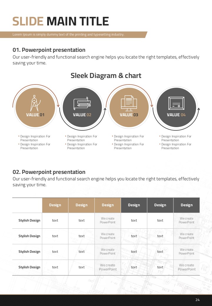 건축 설계 디자인 세로형 템플릿 – 감각적인 프레젠테이션 디자인