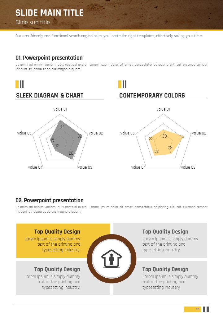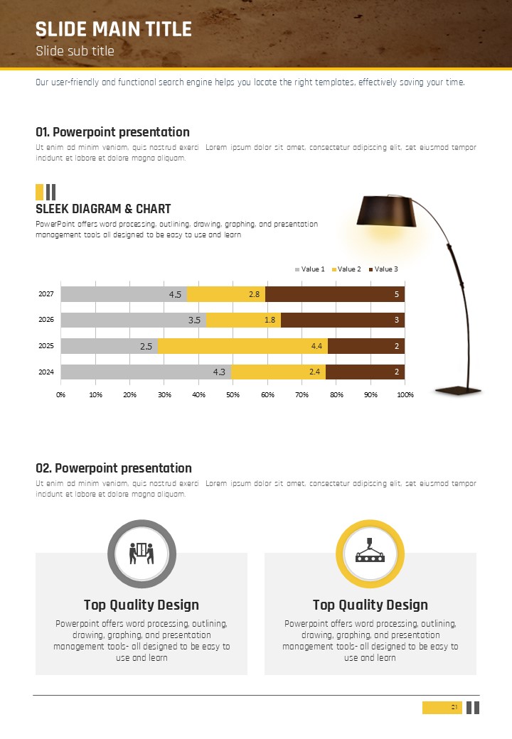 이 템플릿은 인테리어 디자인 프레젠테이션에 최적화된 세로형 슬라이드 구성을 제공합니다. 감각적인 색상 조합과 모던한 디자인으로, 프로젝트 제안서, 포트폴리오, 사례 연구 등 다양한 문서 유형에 활용할 수 있습니다. 건축 및 인테리어 전문가, 디자인 대행사, 스타트업 팀에게 추천드립니다.