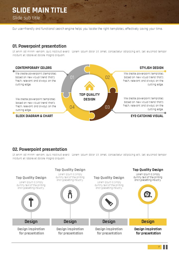 건설/부동산 톱니바퀴 프레젠테이션 템플릿 – 창의적이고 실용적인 디자인