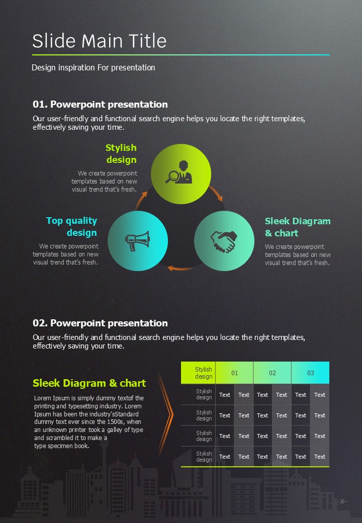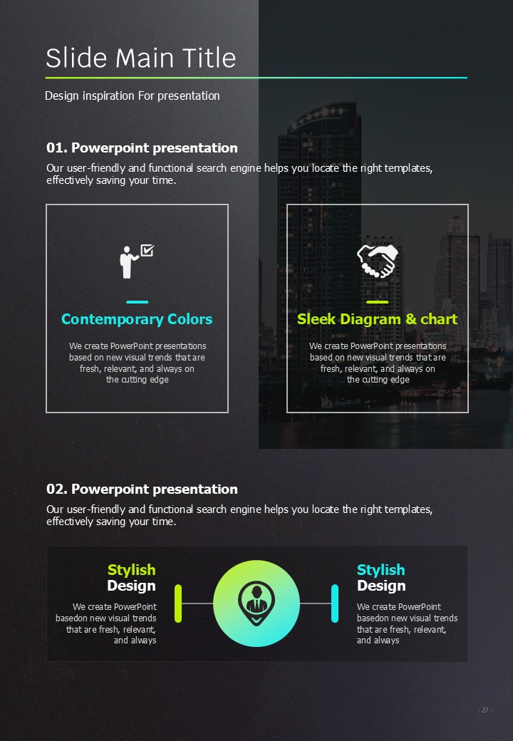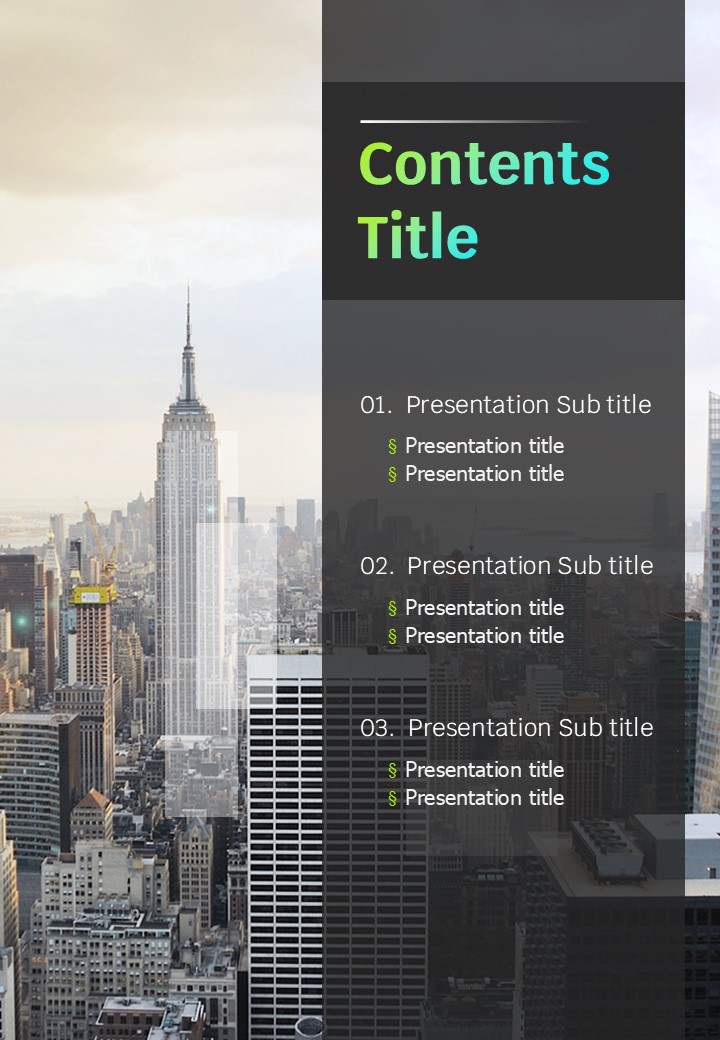 이 템플릿은 신도시 개발과 관련된 발표 및 제안서에 최적화된 세로형 구조로 설계되었습니다. 초록과 청록 색조의 현대적이고 심플한 디자인은 청중의 시선을 사로잡고, 복잡한 데이터를 명확하게 전달할 수 있도록 돕습니다. 건설업체, 부동산 개발사, 그리고 관련 프로젝트 발표를 준비하는 전문가들에게 특히 추천드립니다.