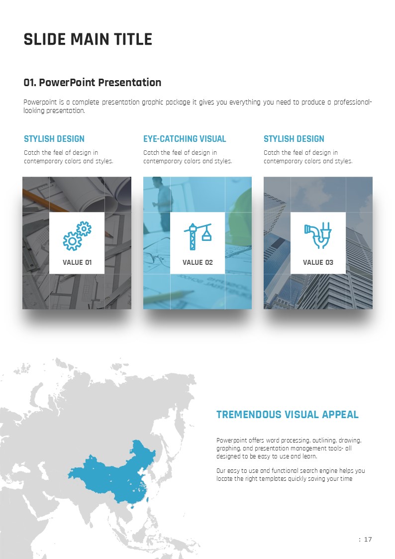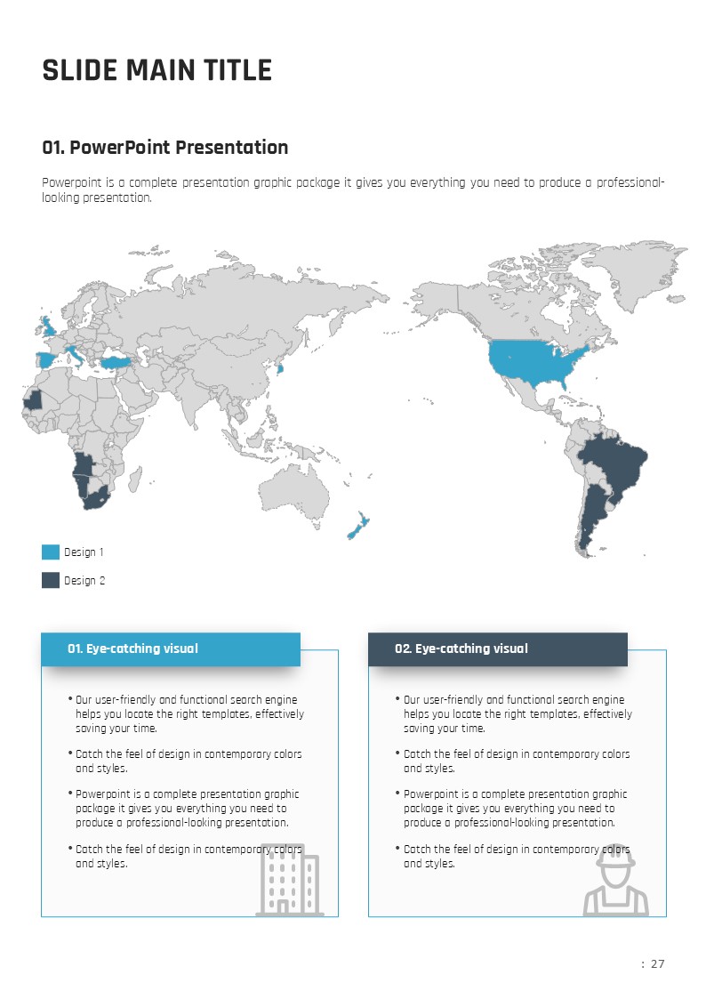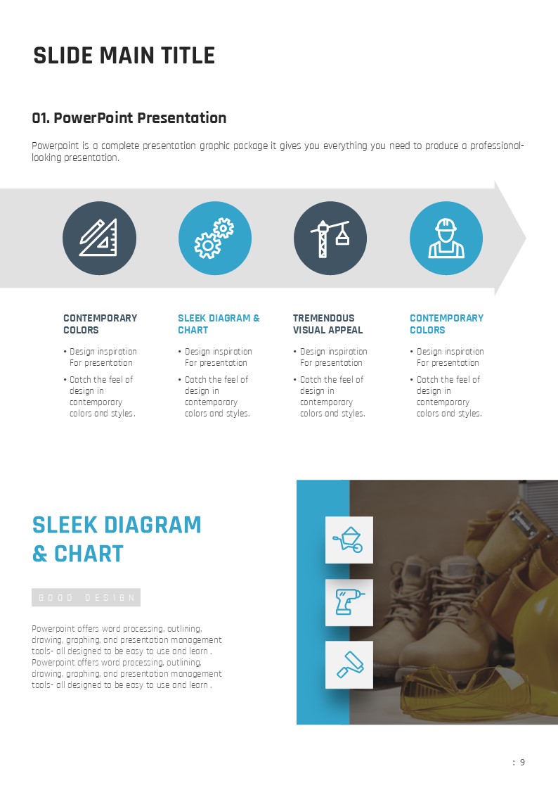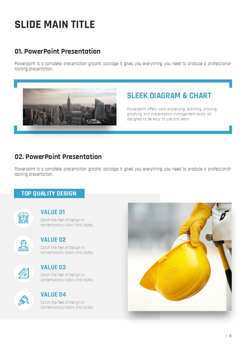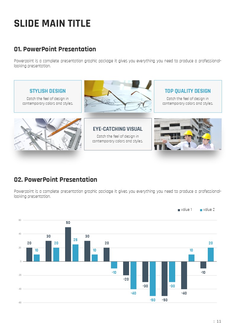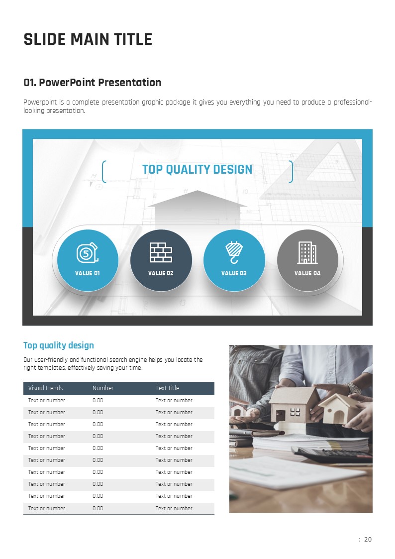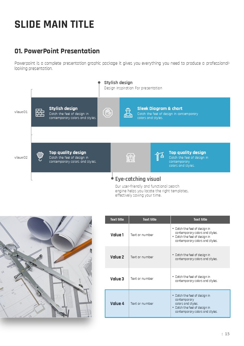 이 템플릿은 건설 및 부동산 분야에 이상적인 세로형 프레젠테이션 템플릿으로, 신뢰감 있는 디자인을 제공합니다. 시각적으로 매력적인 레이아웃은 주요 개념과 데이터를 효율적으로 전달할 수 있도록 구성되어 있으며, 제안서, 프로젝트 보고서, 기업 소개서 등에 활용하기에 최적화되어 있습니다. 건설기업, 기획자, 전문직 종사자에게 추천합니다.