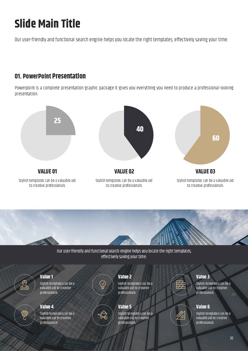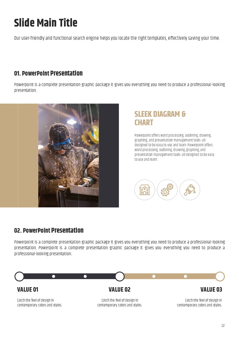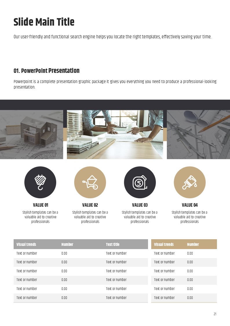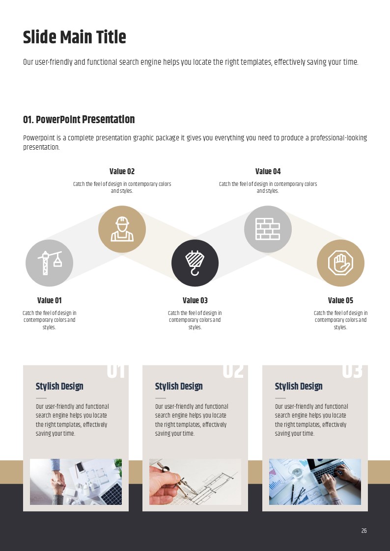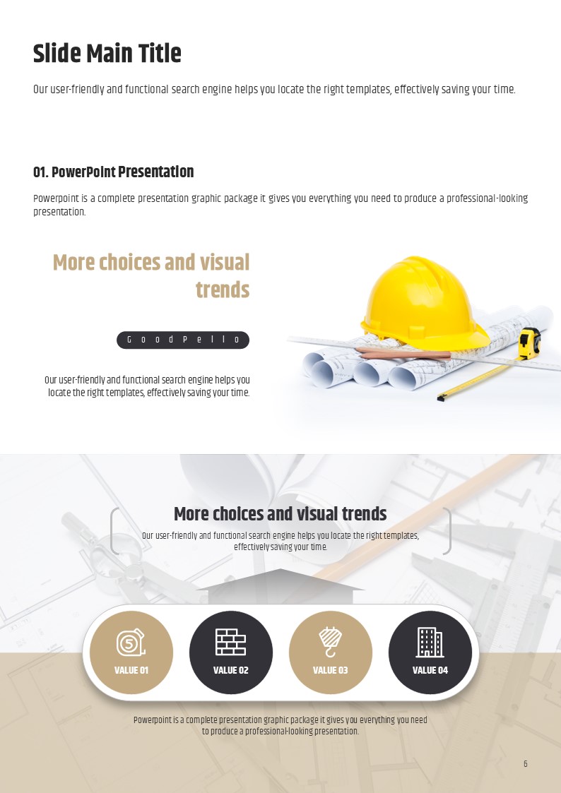 건설 프레젠테이션 템플릿 - 세련되고 전문적인 디자인