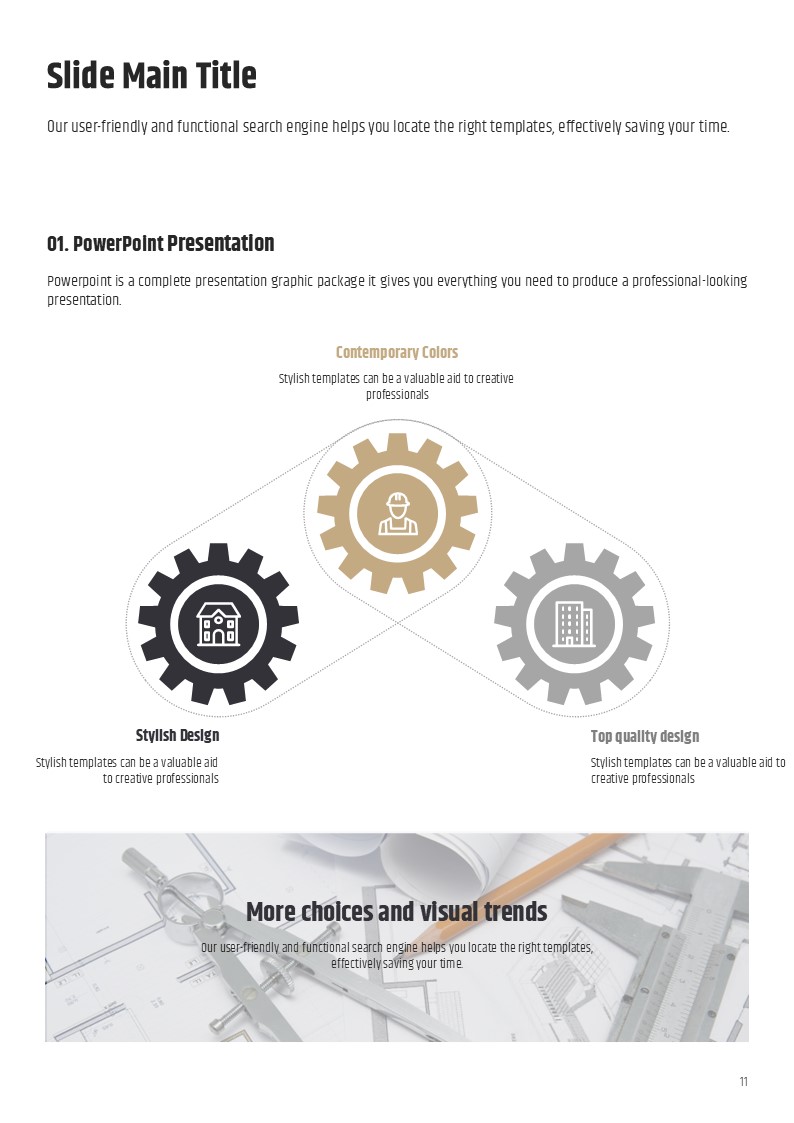 건설/부동산 톱니바퀴 프레젠테이션 템플릿 – 창의적이고 실용적인 디자인
