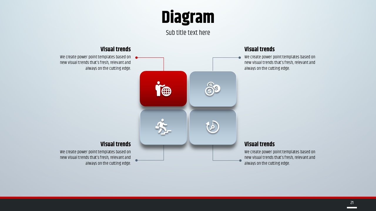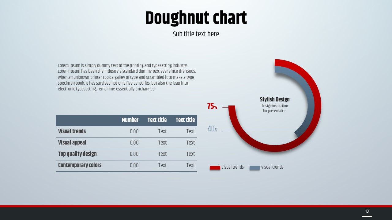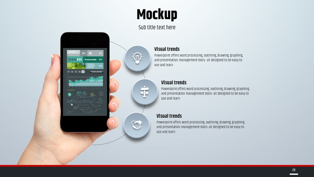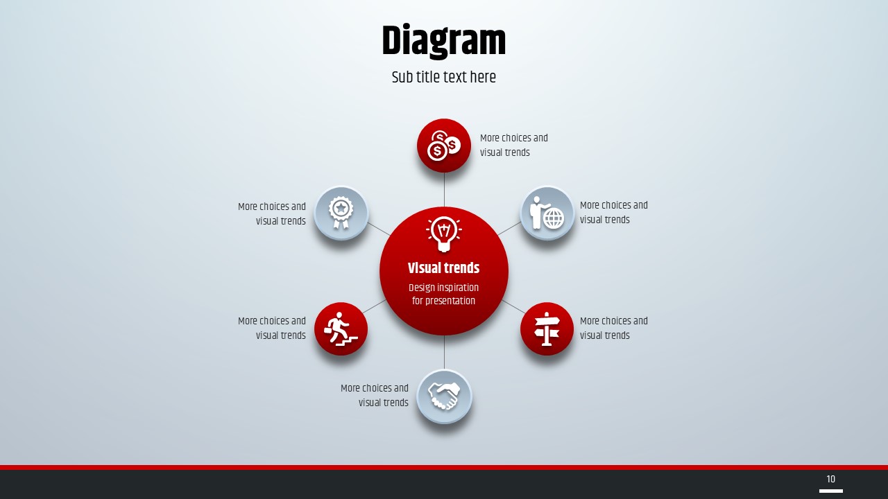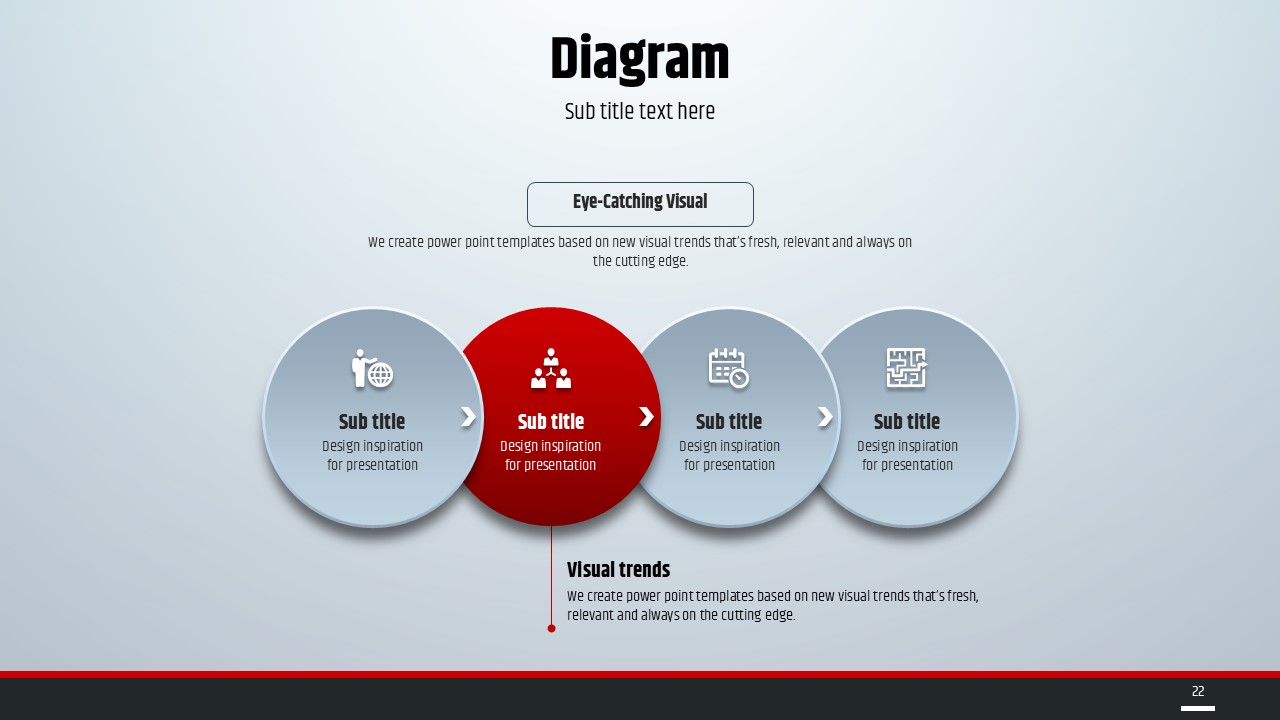 이 원 패턴 피피티 와이드 템플릿은 세련되고 간결한 원형 디자인으로 구성되어 있습니다. 넓은 화면에 최적화되어 있어 프레젠테이션, 기획서 그리고 제안서 등 다양한 문서 유형에 적합합니다. 이 템플릿은 기업, 스타트업 관계자, 교육자, 그리고 다수의 청중을 대상으로 하는 발표를 하는 전문가들에게 매우 유용합니다. 붉은 색상의 포인트와 깔끔한 구성은 청중의 시선을 끌고, 효과적으로 메시지를 전달할 수 있도록 돕습니다. 자료를 한눈에 이해하기 쉽게 시각적으로 표현하는 데 최적화되어 있습니다.