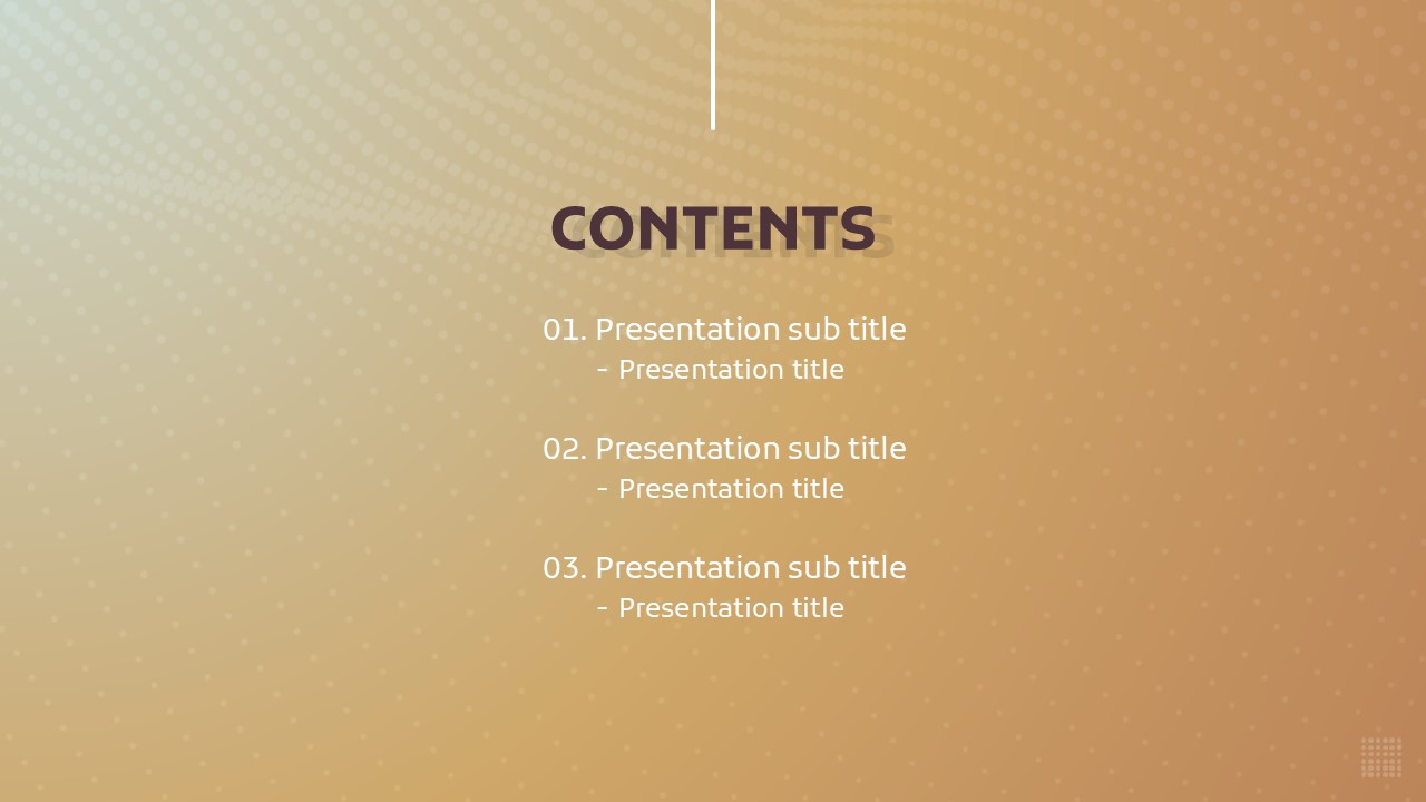 이 도트 패턴 파워포인트 템플릿은 다양한 비즈니스 상황에 유연하게 활용할 수 있도록 설계되었습니다. 현대적이고 감각적인 디자인으로, 제안서, 보고서, 또는 프레젠테이션 자료에 적합합니다. 갈색 톤의 세련된 배경은 정보의 전달을 돕고, 시각적으로 매력적인 요소를 제공합니다. 기업 실무자, 스타트업 팀, 디자인 전문가들에게 추천드립니다.