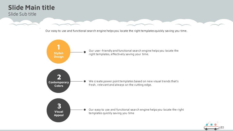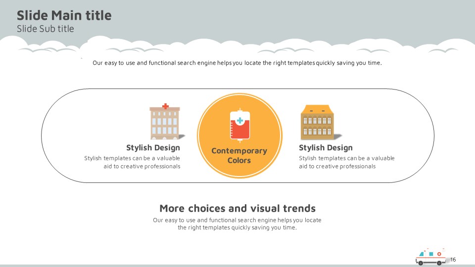 이 엠뷸란스 PPT 템플릿은 의료 분야에서의 전문적인 프레젠테이션에 최적화된 구성으로, 세련된 디자인 요소와 다채로운 색상 조화를 특징으로 합니다. 다양한 문서 유형, 즉 의료 보고서, 제안서 및 프레젠테이션에 적합하여, 전문적인 인상을 주기 위한 모든 요소를 갖추고 있습니다. 이 템플릿은 의료계 종사자, 의료기기 회사, 그리고 구조 혁신을 연구하는 전문가에게 유용합니다.