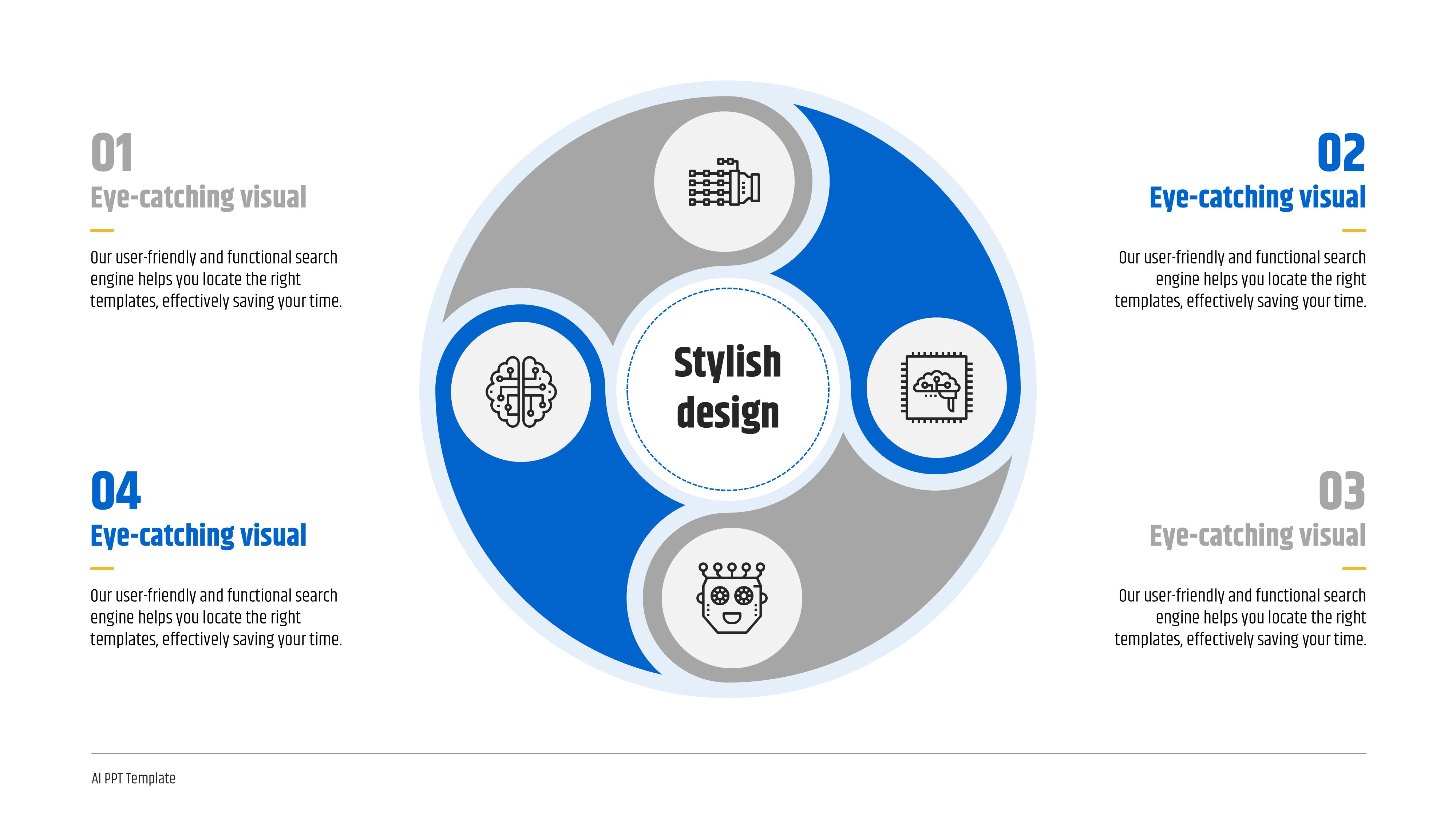 이 템플릿은 인공지능 관련 프레젠테이션에 최적화된 디자인으로, 세련된 파란색과 노란색 조합으로 미래지향적인 인상을 주며 전문적인 분위기를 연출합니다. 데이터 시각화, SWOT 분석, 원형, 차트, 그리고 다양한 정보를 명확하게 나열할 수 있는 다양한 슬라이드 구성을 제공합니다. IT기업 실무자, 스타트업 팀, 또는 교육 및 연구 분야 종사자들에게 특히 유용하며, 현실 세계의 데이터를 커뮤니케이션하는 데에 적합합니다.