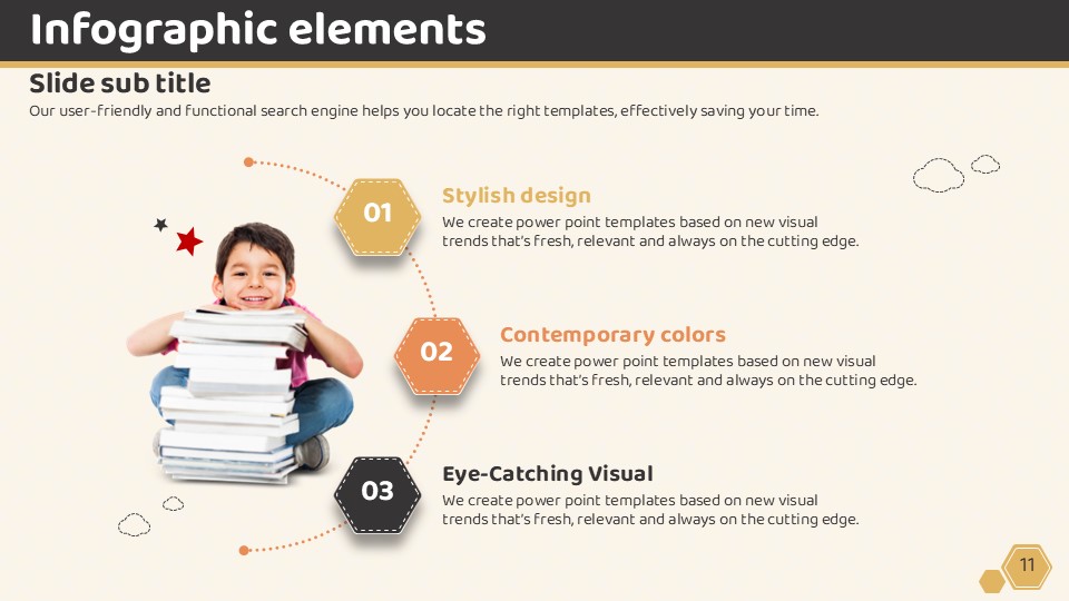 이 템플릿은 어린이 교육에 최적화된 크리에이티브한 디자인으로 구성되어 있습니다. 다채로운 노랑과 주황의 색상이 사용되어 시각적으로 즐거운 프레젠테이션을 제공하며, 교육 자료, 수업 계획, 어린이 행사 소개 등 다양한 문서 유형에 적합합니다. 교육자, 부모, 각종 교육 관련 직종 종사자들에게 이 템플릿을 통해 창의적인 아이디어와 활발한 참여를 유도할 수 있습니다.