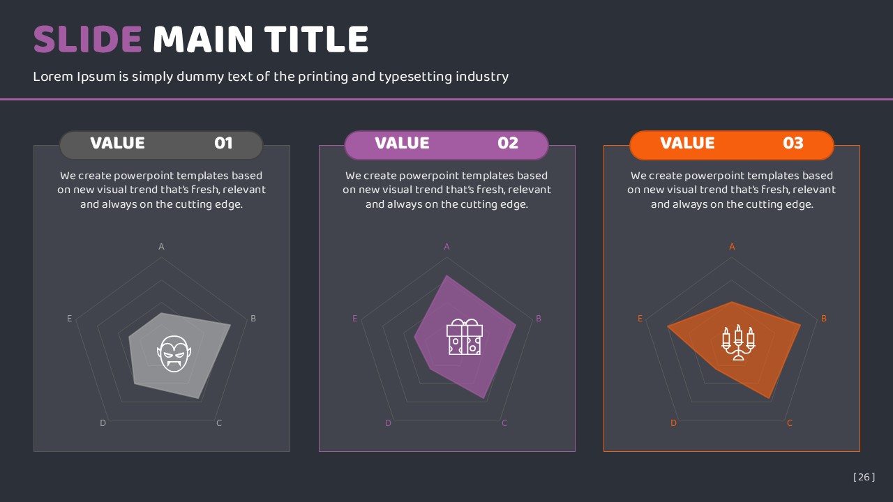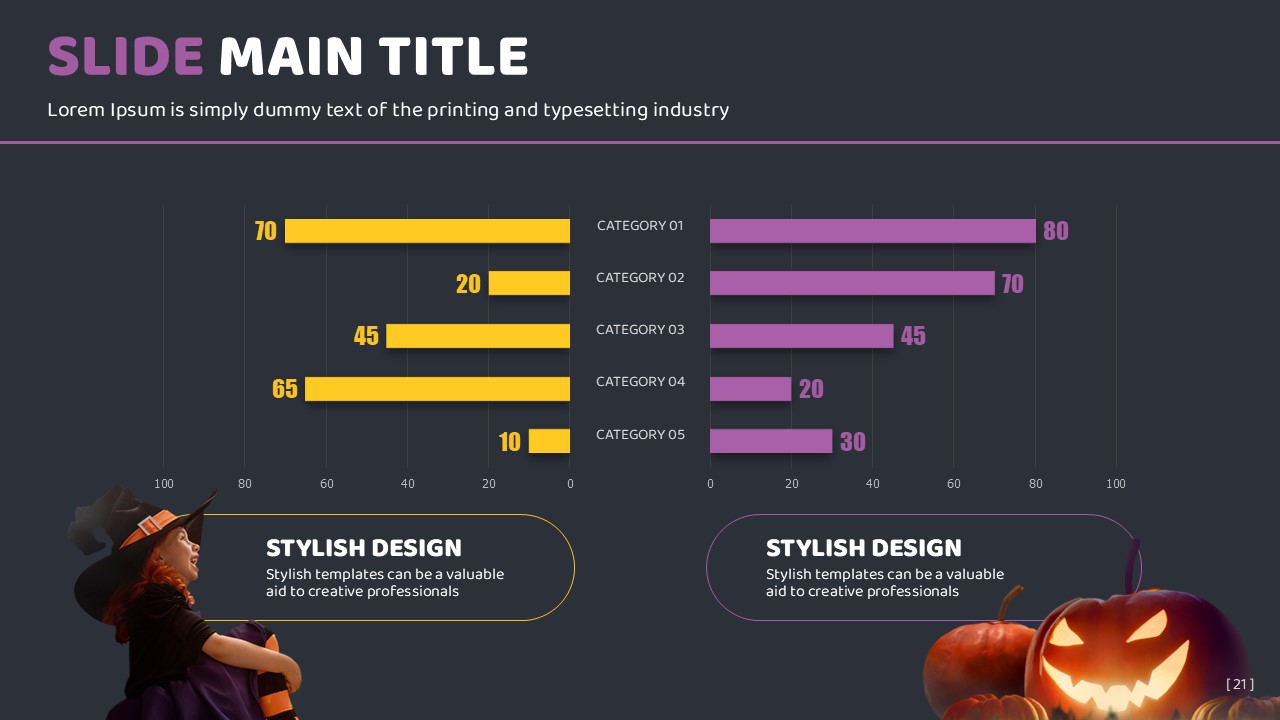 이 템플릿은 할로윈 분위기를 반영한 교육 목적에 최적화된 구성입니다. 주황과 보라 색상 조합이 어우러져 즐거운 이벤트나 교육용 자료 제작에 적합합니다. 슬라이드는 다양한 디자인 요소와 챠트를 포함하여, 보고서 및 발표자료로 활용될 수 있습니다. 학생, 교사, 교육 기관 및 할로윈 관련 대행사에서 활용할 수 있는 실용적 옵션입니다.