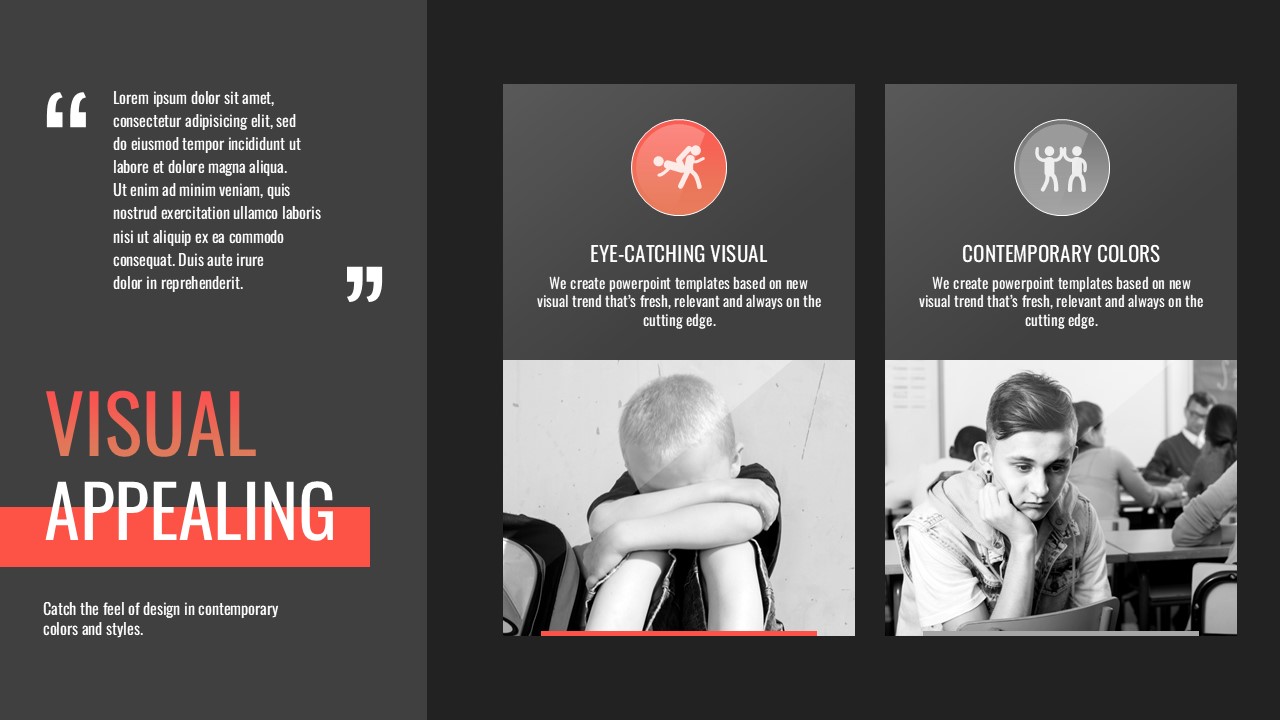 이 템플릿은 학교 폭력 주제에 특화된 프레젠테이션 자료 제작에 적합한 구성입니다. 감정적으로 강렬한 이미지를 중심으로 시각적 요소가 강조되어 있어 주목을 끌 수 있습니다. 교사, 상담사 및 교육 분야의 연구자들에게 특히 유용하며, 사회적 의식 개선을 위한 세미나, 워크숍 진행 시 활용 가능합니다. 멋진 디자인과 함께 학교 폭력 문제에 대한 심도 있는 논의를 이끌어낼 수 있을 것입니다.
