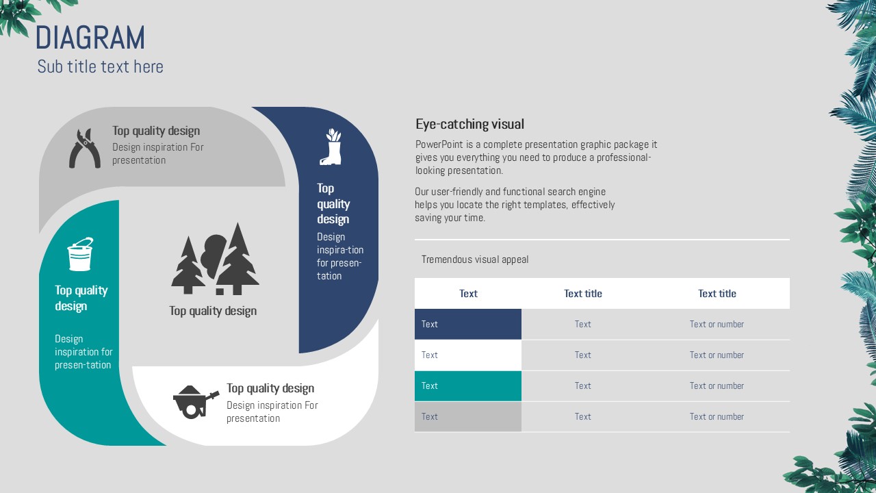 이 템플릿은 식물 및 자연 환경을 주제로 한 프레젠테이션에 최적화되어 있습니다. 초록, 남색, 청록 색상의 조화로운 배경은 시각적으로 편안함을 주고, 스타일리시한 레이아웃으로 기획서, 제안서, 프로모션 자료에 모두 적합합니다. 기업의 환경 프로젝트, 여행 기획, 자연 관련 교육 및 워크숍 자료에 이상적입니다. 이상적인 선택은 자연과 여행을 주제로 하는 다양한 사용자에게 가치를 제공할 것입니다.