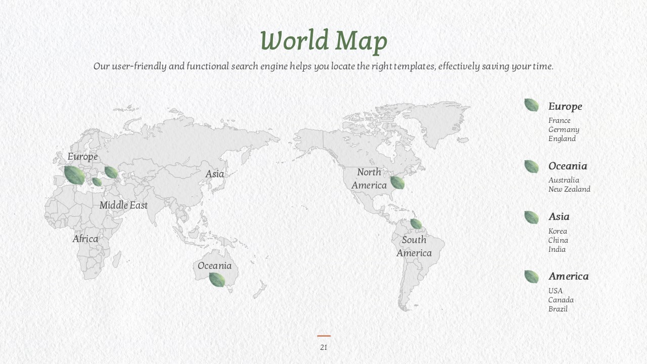 이 템플릿은 유칼립투스의 자연스러운 아름다움을 담아낸 세련된 디자인이 특징입니다. 생기 넘치는 초록색과 따뜻한 주황색 조화를 이루며, 발표 자료, 여행계획서, 또는 환경 관련 기획서 작성에 적합합니다. 여행사, 환경 단체, 그리고 일반 기업의 프레젠테이션을 위해 추천드리며, 신선한 시각적 요소로 청중의 시선을 사로잡을 수 있습니다.