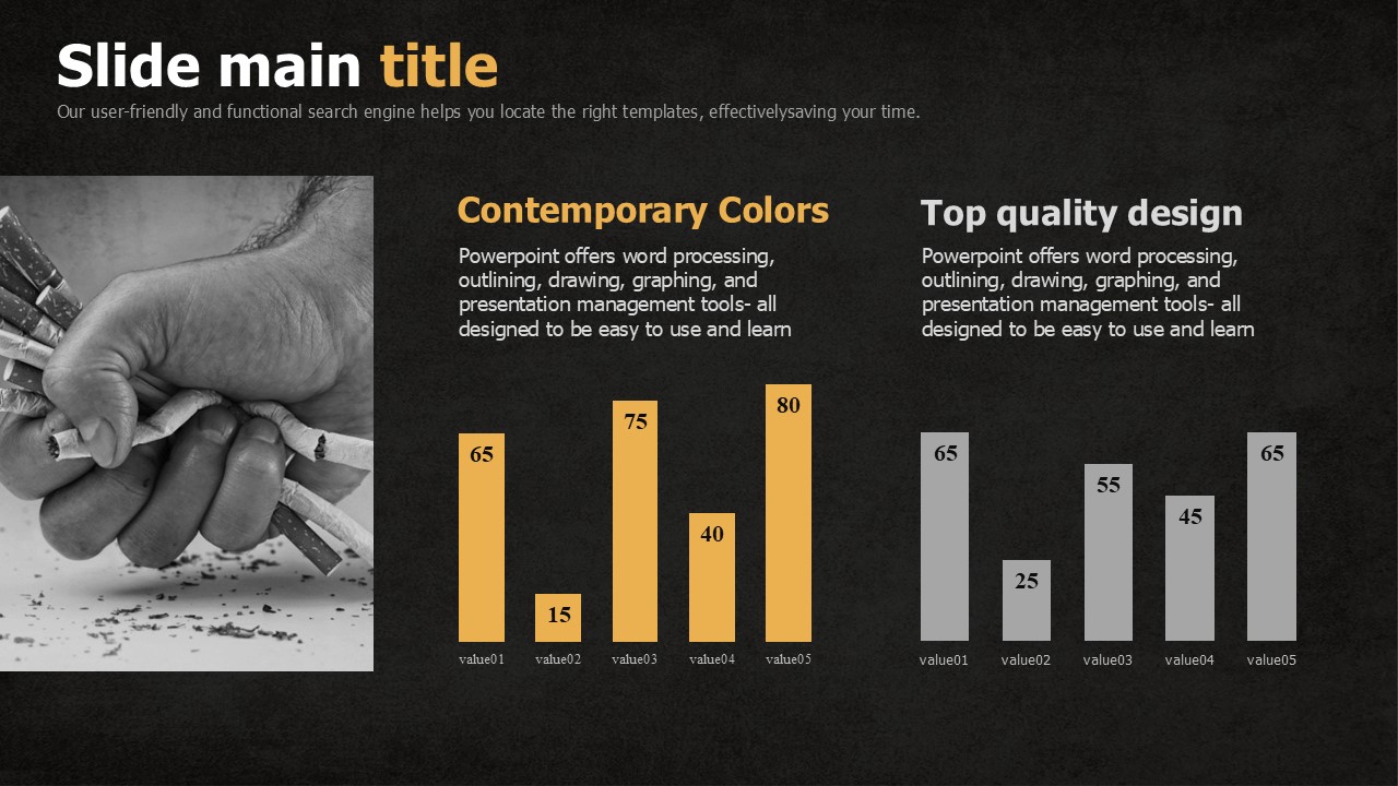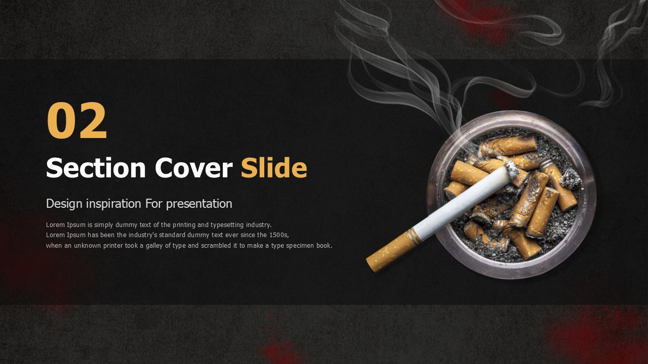 이 템플릿은 담배 관련 주제를 시각적으로 효과적으로 전달할 수 있도록 설계되었습니다. 담배의 영향, 건강 문제 및 관련 통계 등을 주제로 한 발표자료, 기획서 작성에 적합합니다. 독창적인 레이아웃과 감각적인 컬러 조합은 발표의 집중도를 높이며, 직관적인 정보 전달을 도와줍니다. 기업 실무자, 건강 관련 전문가, 공공기관 관계자에게 추천드립니다.
