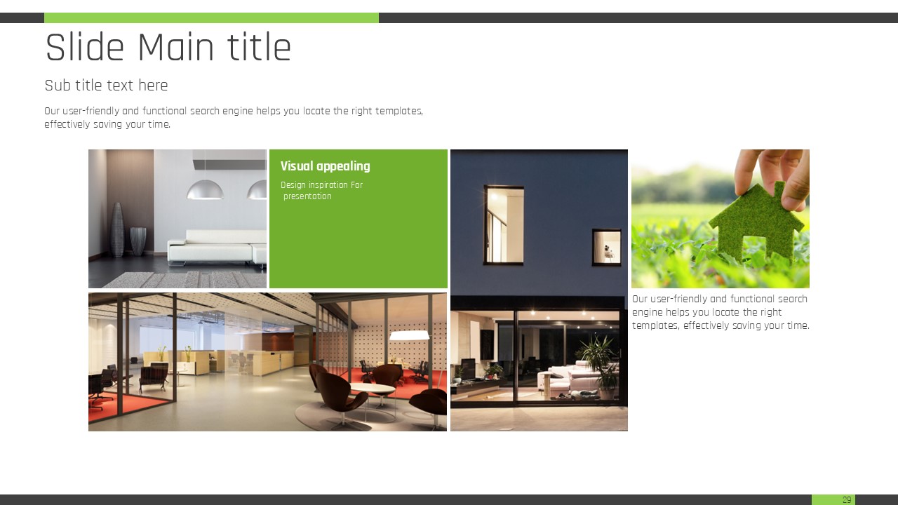 이 템플릿은 현대적인 부동산 정보를 매력적으로 소개하는 데 최적화된 디자인입니다. 정보가 명확하게 전달될 수 있도록 구성된 이 슬라이드는 프레젠테이션, 기획서, 제안서 등 다양한 문서 유형에 적합하며, 특히 부동산 회사나 중개업체의 소개 자료로 추천드립니다. 초록색 포인트가 눈길을 끌어 강렬한 인상을 남길 수 있습니다.
