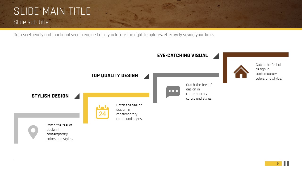 이 인테리어 디자인 PPT 템플릿은 현대적이고 세련된 색감과 구조를 통해 다양한 건설 및 부동산 관련 프레젠테이션에 적합합니다. 노란색과 갈색을 조화롭게 사용하여 아늑하고 자연스러운 느낌을 전달하며, 기획서, 디자인 발표, 보고서 등 다양한 문서 유형에 유연하게 활용할 수 있습니다. 인테리어 디자인 분야의 전문가나 기업 실무자에게 특히 추천드립니다.