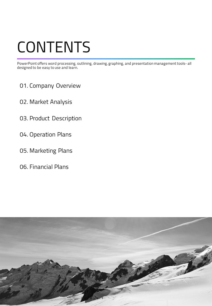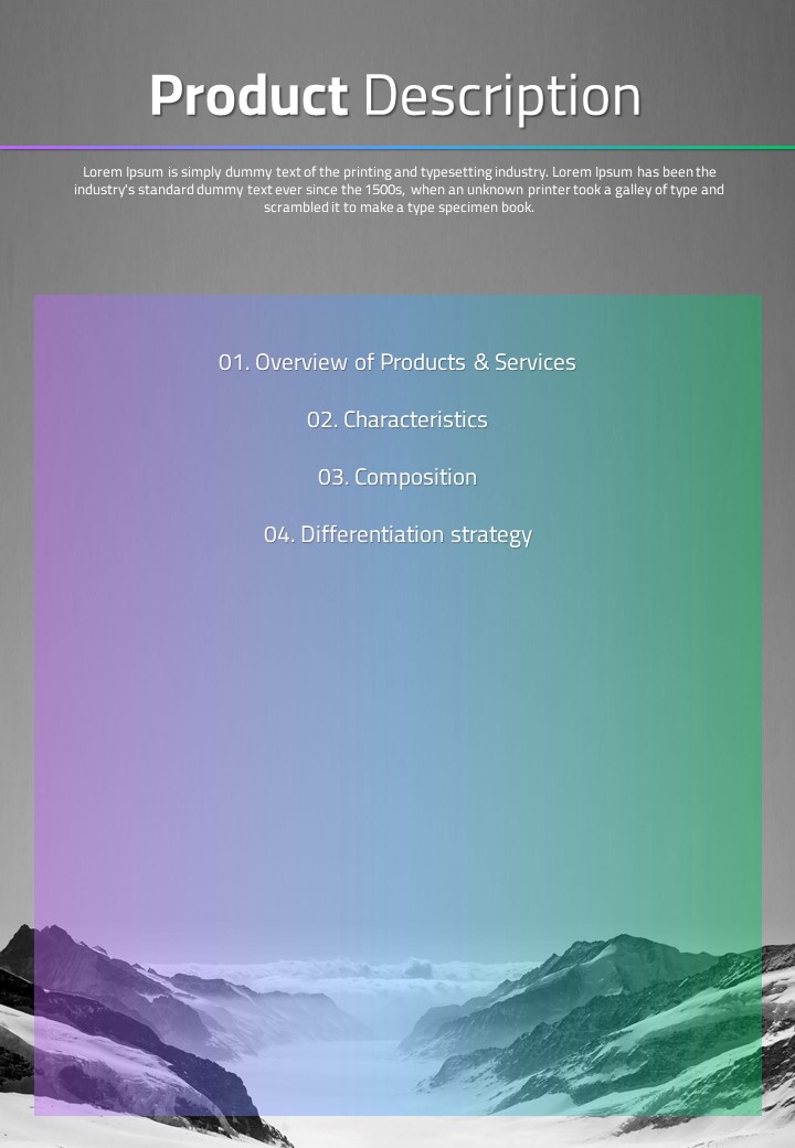 이 템플릿은 그라데이션 효과를 활용한 세로형 사업계획서 전문 템플릿으로, 효과적인 정보 전달을 돕습니다. 명확한 시각적 구조와 다채로운 색상이 조화를 이루어, 중요한 비즈니스 아이디어와 전략을 청중에게 임팩트 있게 전달하는 데 최적화되어 있습니다. 사업 기획자, 스타트업 창업자, 마케터에게 강력히 추천합니다.
