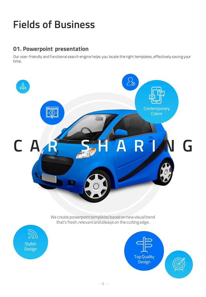 카 셰어링 사업계획서 PPT 템플릿 – 전문적인 시각적 구성