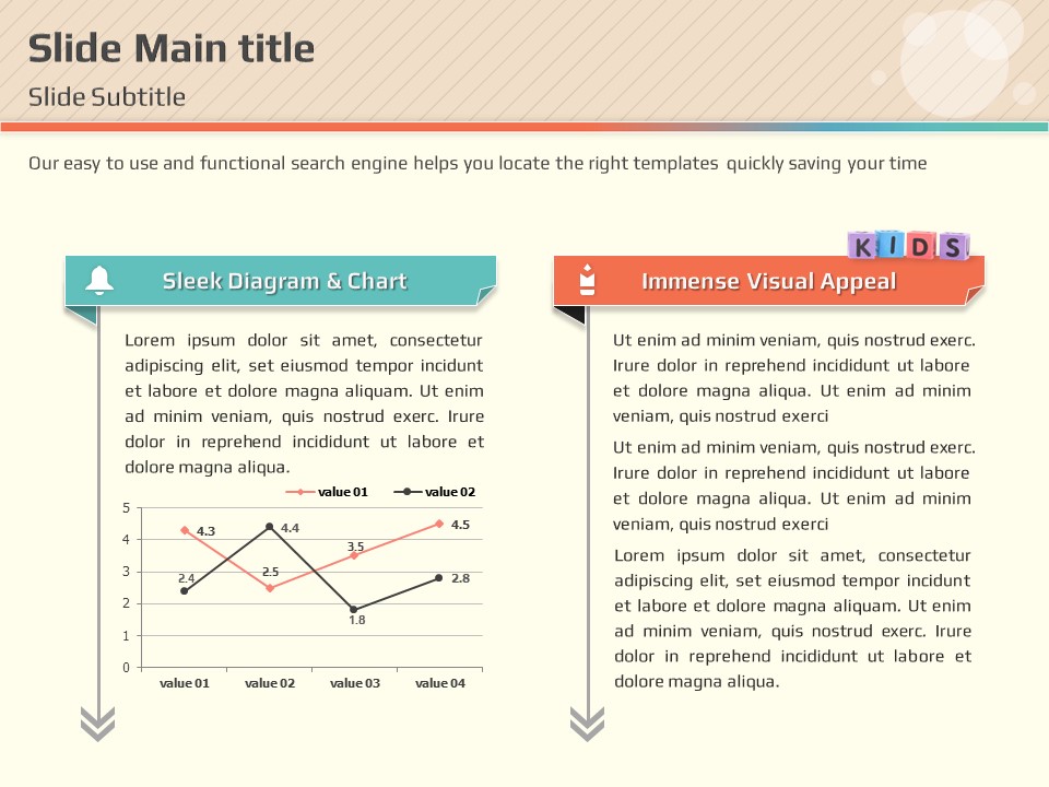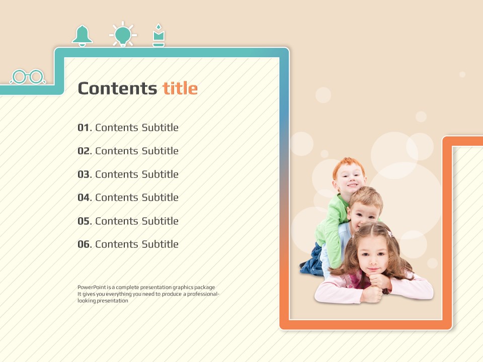 이 템플릿은 어린이들을 대상으로 한 교육 자료 제작에 최적화된 디자인으로 구성되어 있습니다. 주황과 청록의 밝은 색상 조합은 어린이들이 쉽게 느낄 수 있는 환영하는 분위기를 만들어줍니다. 이 템플릿은 학습 자료, 수업 계획, 어린이 행사 발표 등 다양한 교육적 목적으로 활용될 수 있습니다. 유아 교육자, 학원 강사, 부모님들이 특히 좋아할 만한 디자인입니다.