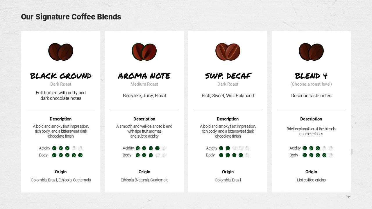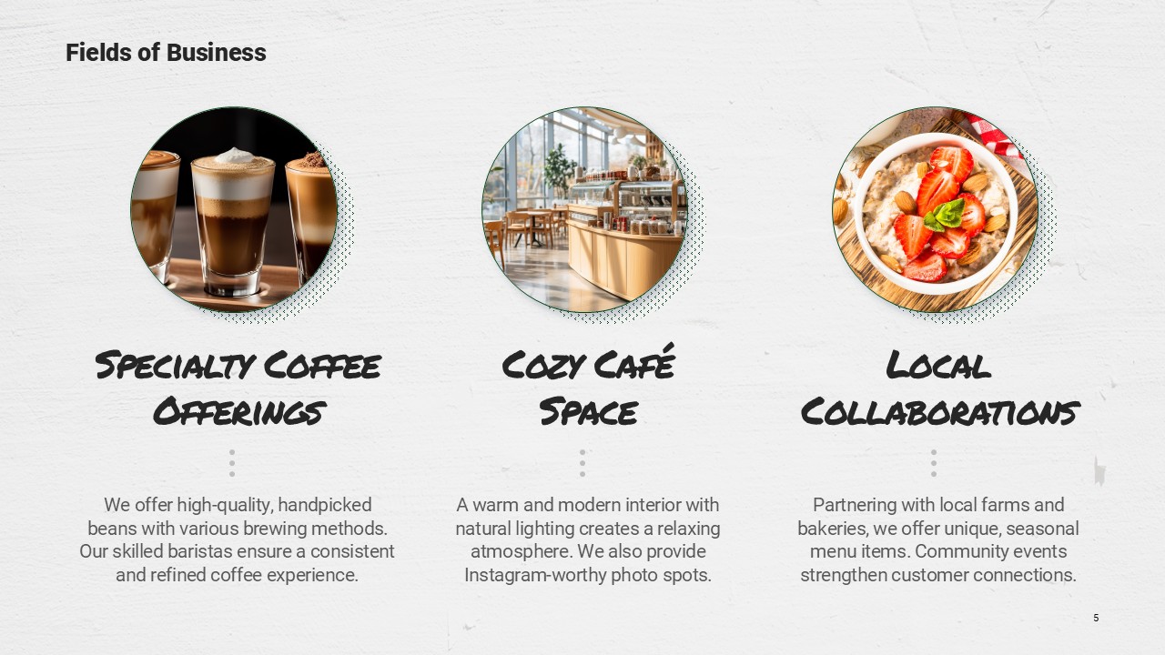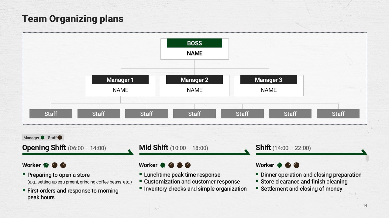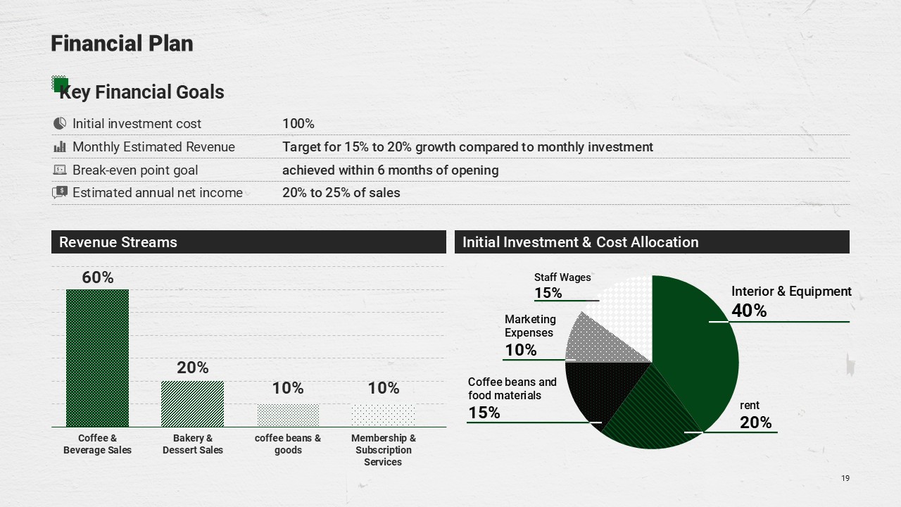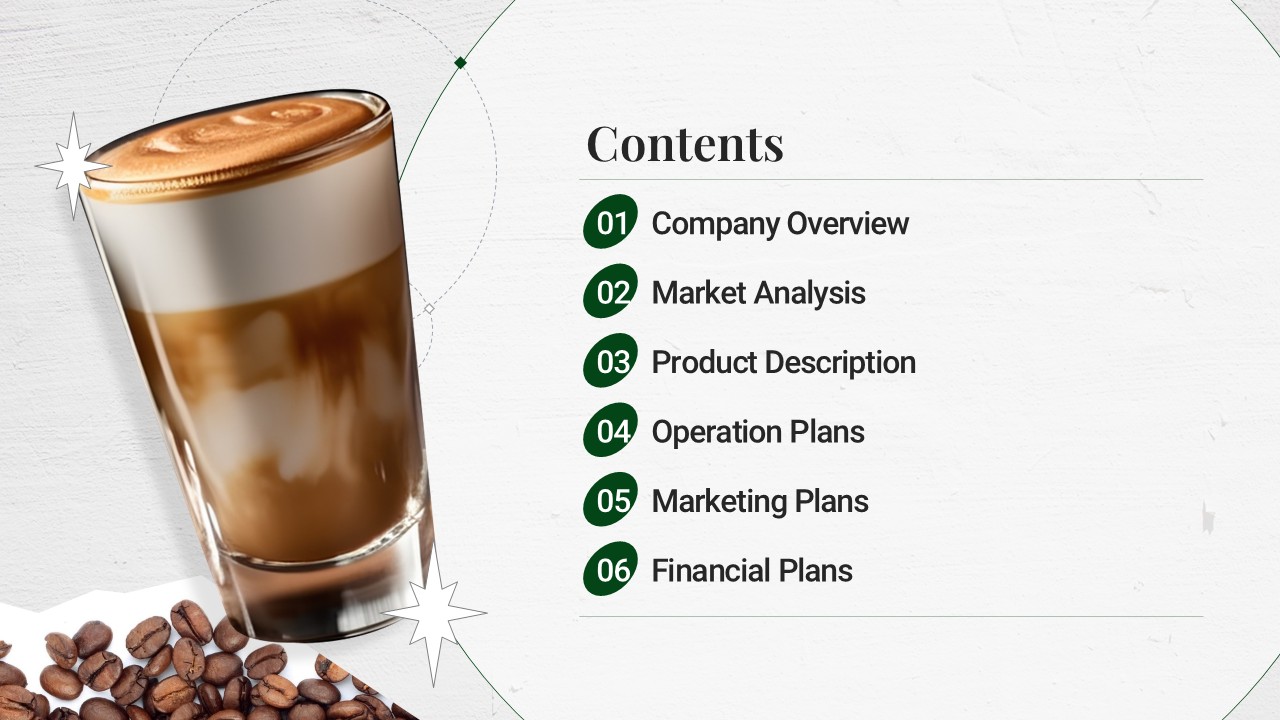 이 프리미엄 카페 브랜드 사업계획서 템플릿은 세련되고 매력적인 디자인으로, 표지, 시장 분석, 운영 계획, 팀 구성 등을 포함한 20장의 슬라이드로 구성되어 있습니다. 이 템플릿은 카페 창업 및 운영에 필요한 모든 핵심 요소를 포함하고 있어, 잠재 투자자들에게 올바른 메시지를 전달하는 데 적합합니다. 카페 사업가, 스타트업 팀, 투자자와의 협의에 적합한 문서로, 실제 사용 상황뿐만 아니라 시각적으로도 풍부한 정보를 제공합니다.